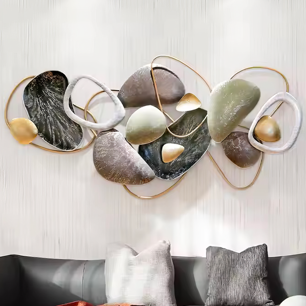 Decoratiune Metalica de Perete LuxCanva® Stone Harmony A2028, din Metal, Orizontal, Negru, Gri, Alb, Auriu, Dimensiune Mare 135 x 64 cm