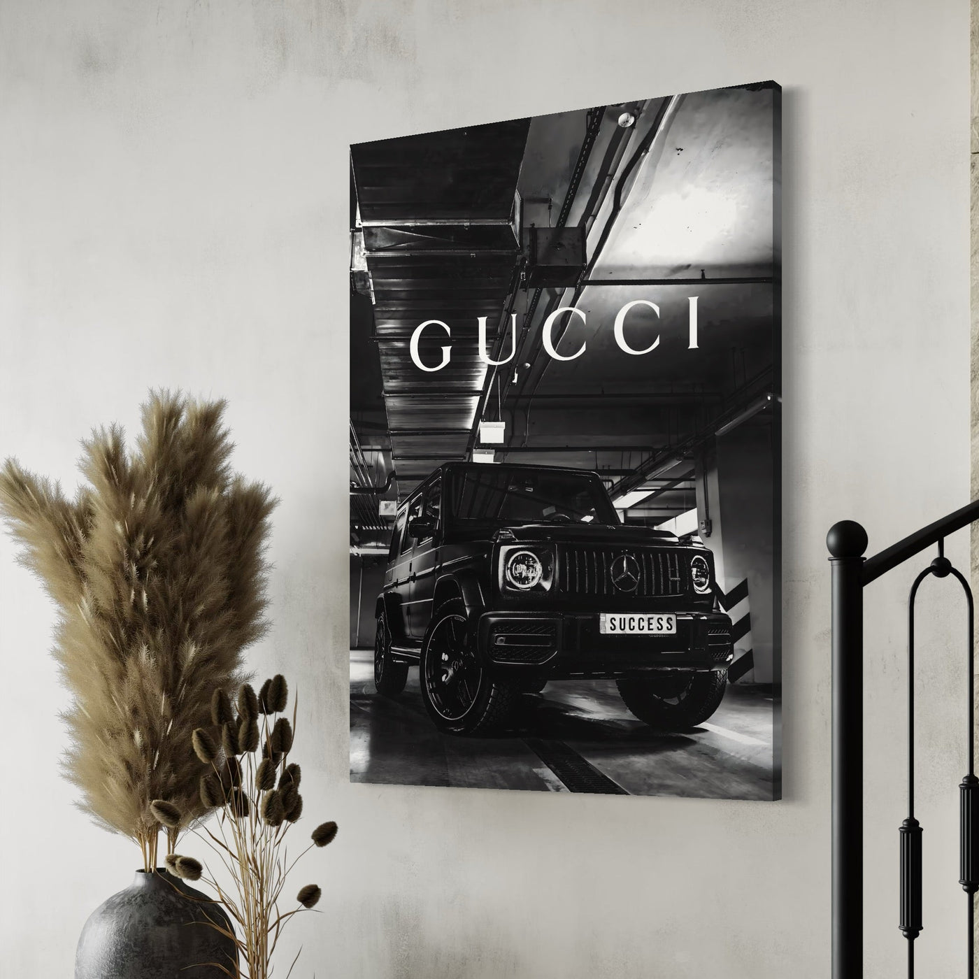 Tablou Canvas Premium, LuxCanva® A1124, Gucci , Mercedes, Succes, Alb, Negru