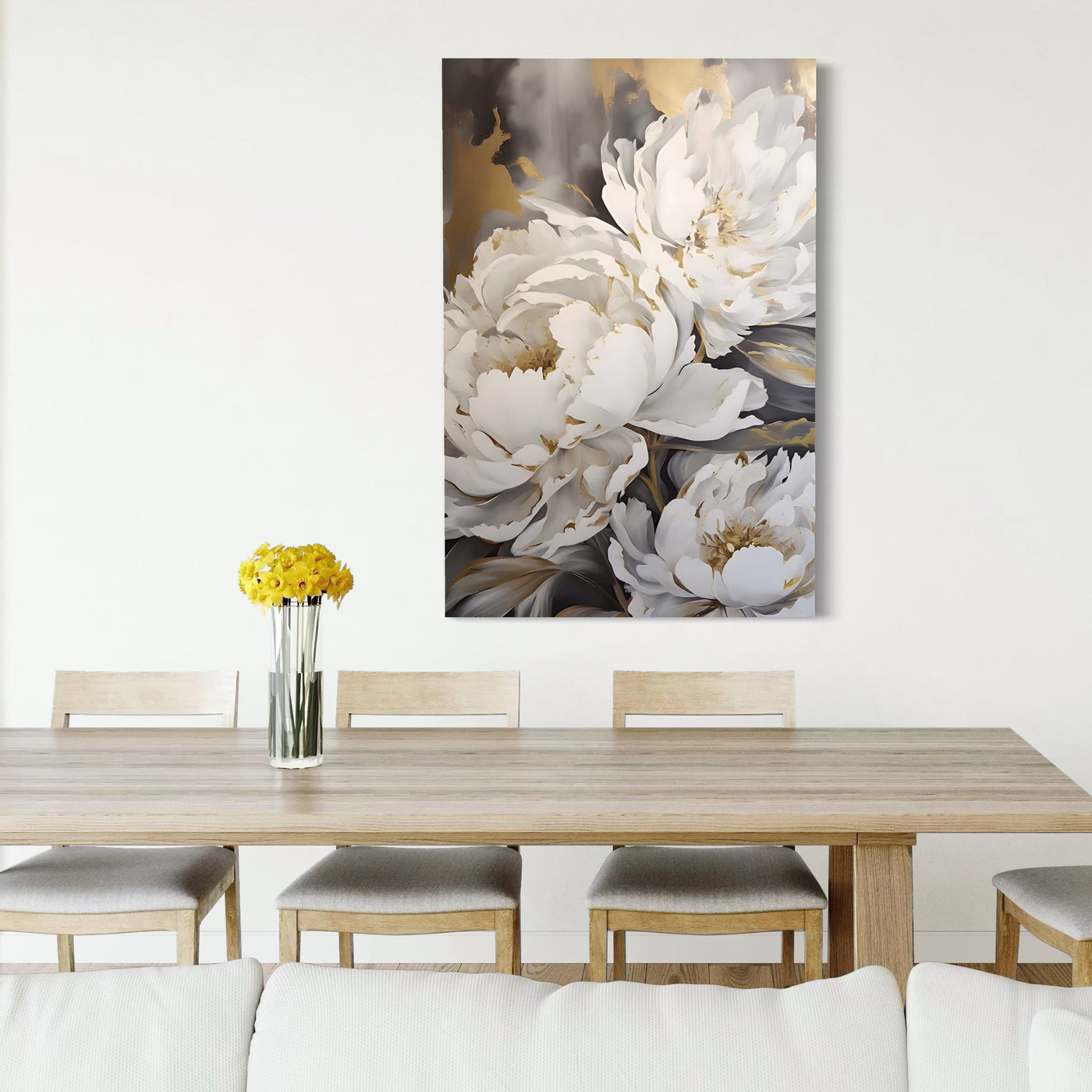 Tablou Canvas Premium LuxCanva® A1417, White Flowers , Living Room, Natura, Flori, Gold, Decorativ, Culori Vibrante - 40 X 60