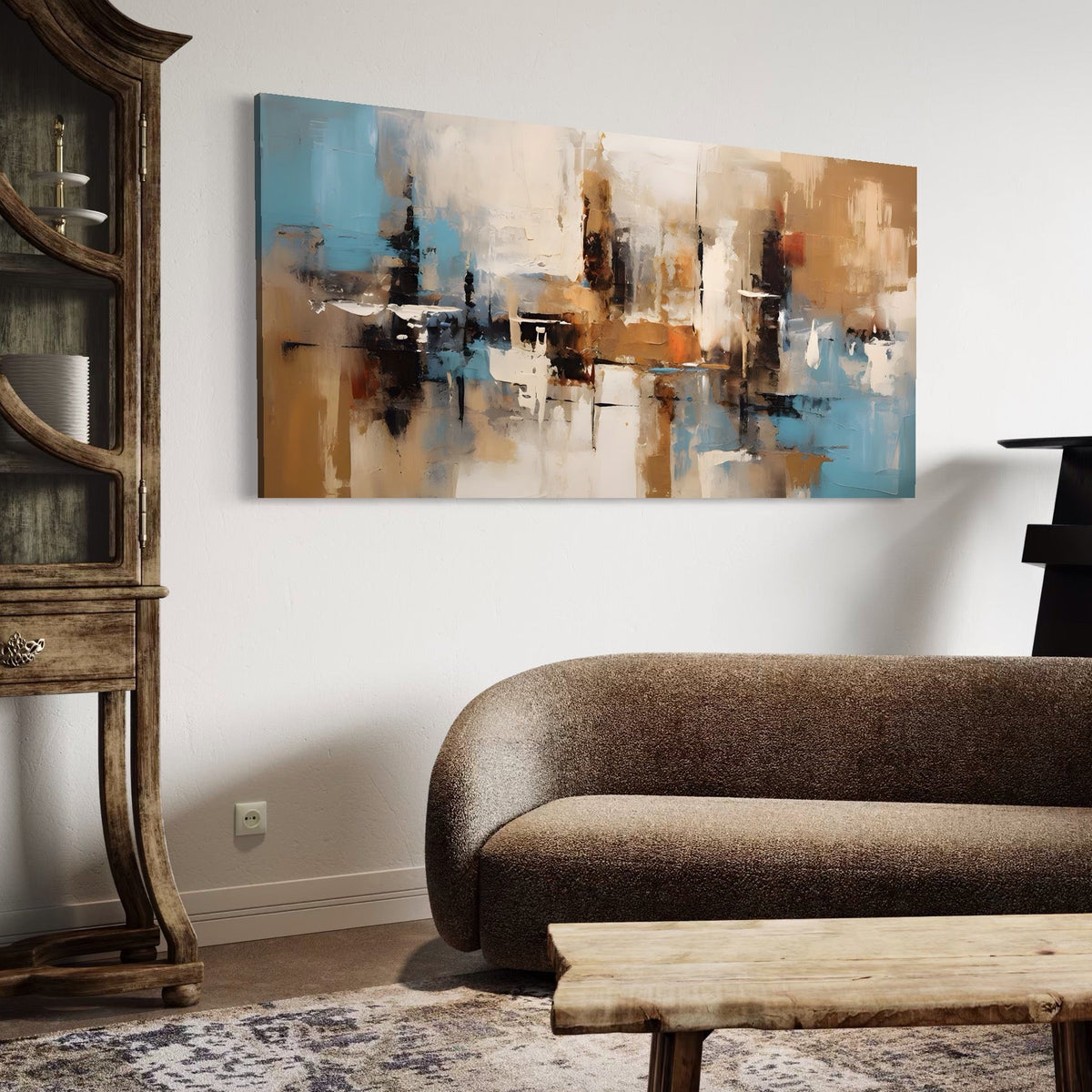 Tablou Canvas Premium LuxCanva® A1585, Splendoare Aurie , Room, Decorativ, Abstract, Culori, Pensulat, Living, Culori Vibrante - 50 X 100