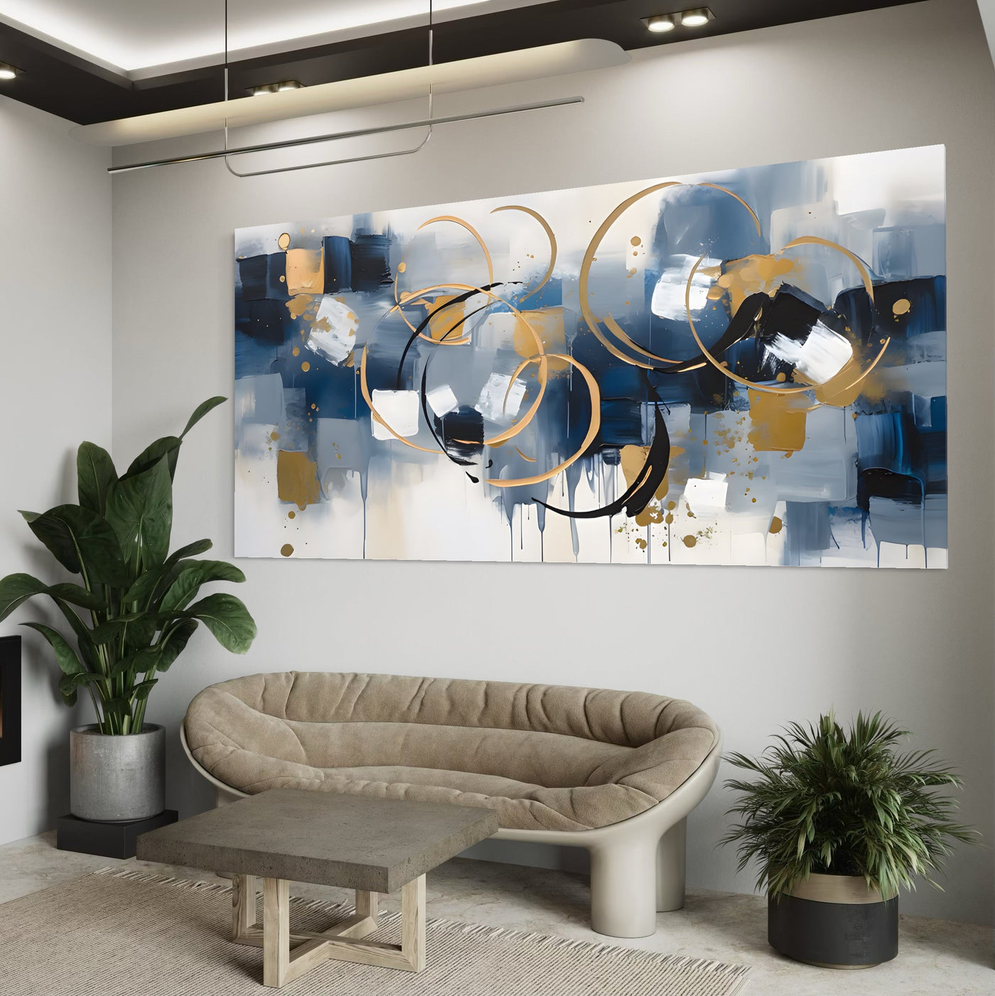 Tablou Canvas Premium LuxCanva® C1243 WhIte Gold And Blue Painting , Relaxare, Living Room, Culori Vibrante