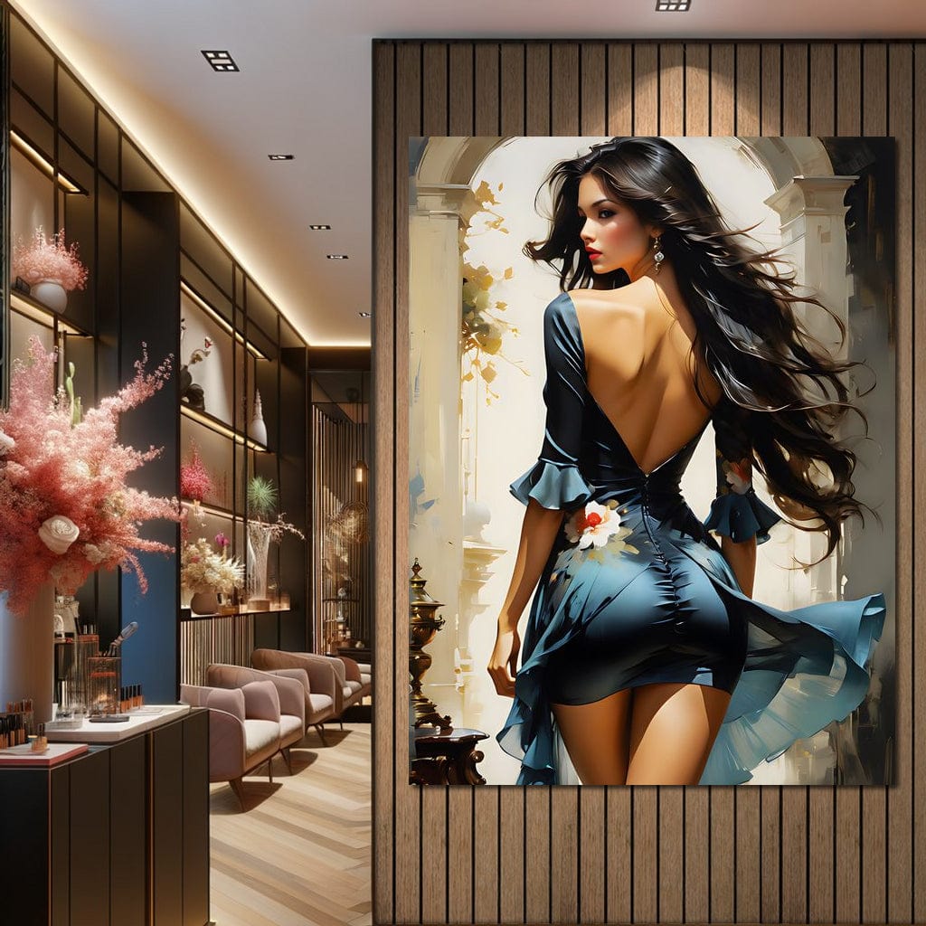 Tablou Canvas Premium LuxCanva® G1005, Povestea Unei Priviri , Romantism, Vant, Miscare, Rochie, Albastru, Satinat, Living, Dormitor, Culori vibrante