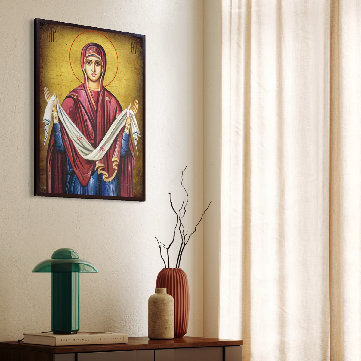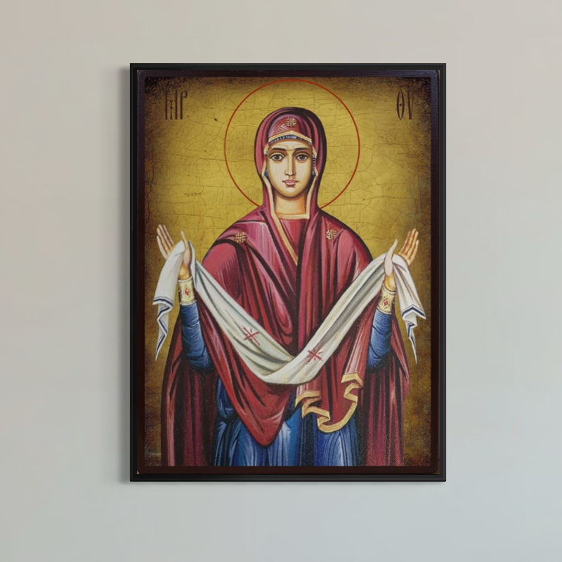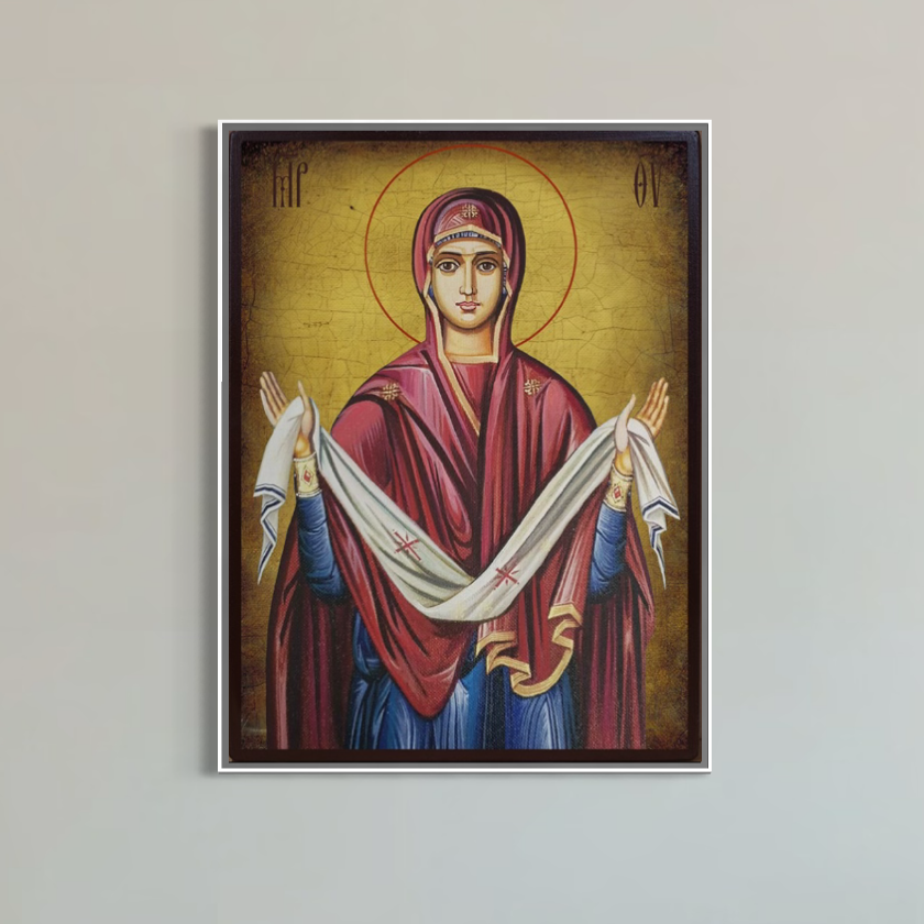 Tablou Canvas Premium, LuxCanva® H1063, Acoperamantul Maicii Domnului, Divinitate, Sarbatoare, Ortodoxie, Credinta, Pace, Suflet, Nadejde, Fecioara, Living, Dormitor - 45 X 60