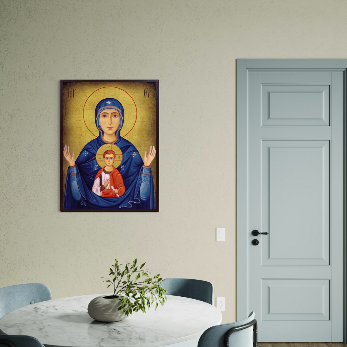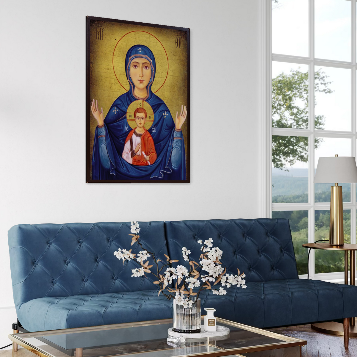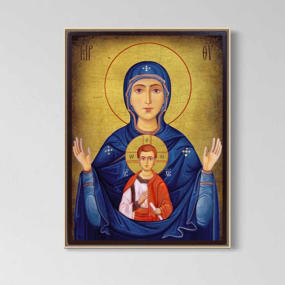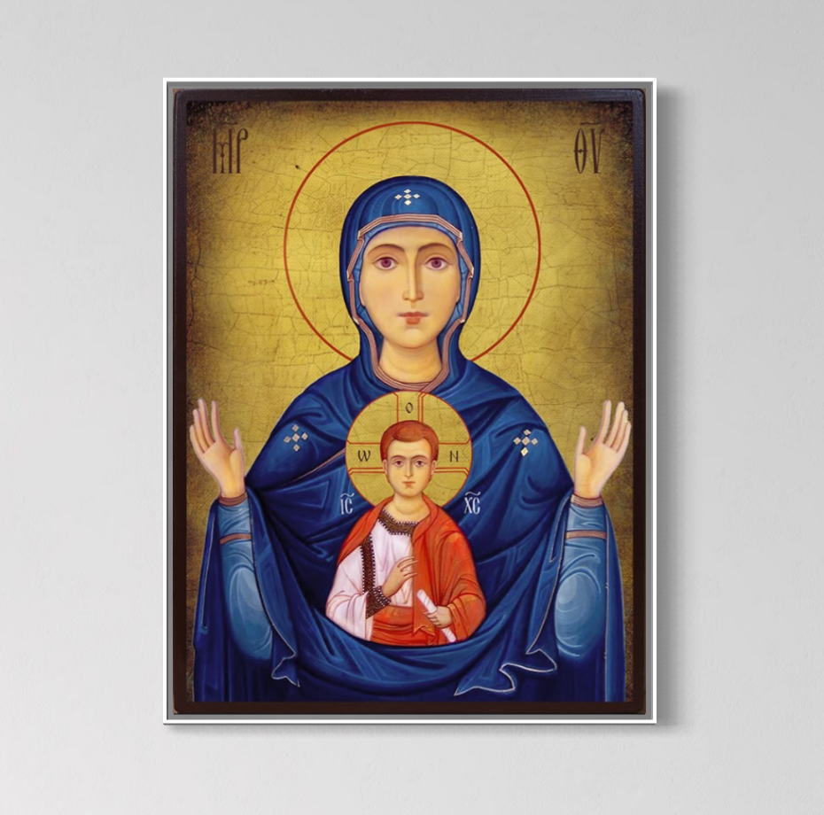 Tablou Canvas Premium, LuxCanva® H1066, Maica Domnului a Semnului, Icoana, Sfanta, Ortodoxie, Nascatoare, Prunc, Biserica, Arta, Sacru, Fecioara, Maria, Mama, Ruga, Living, Dormitor