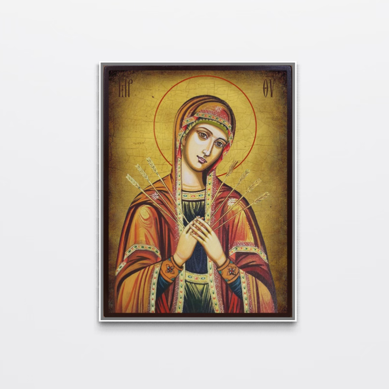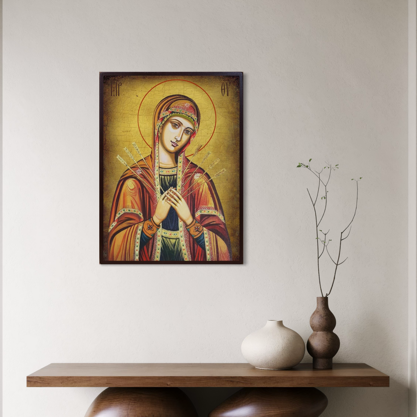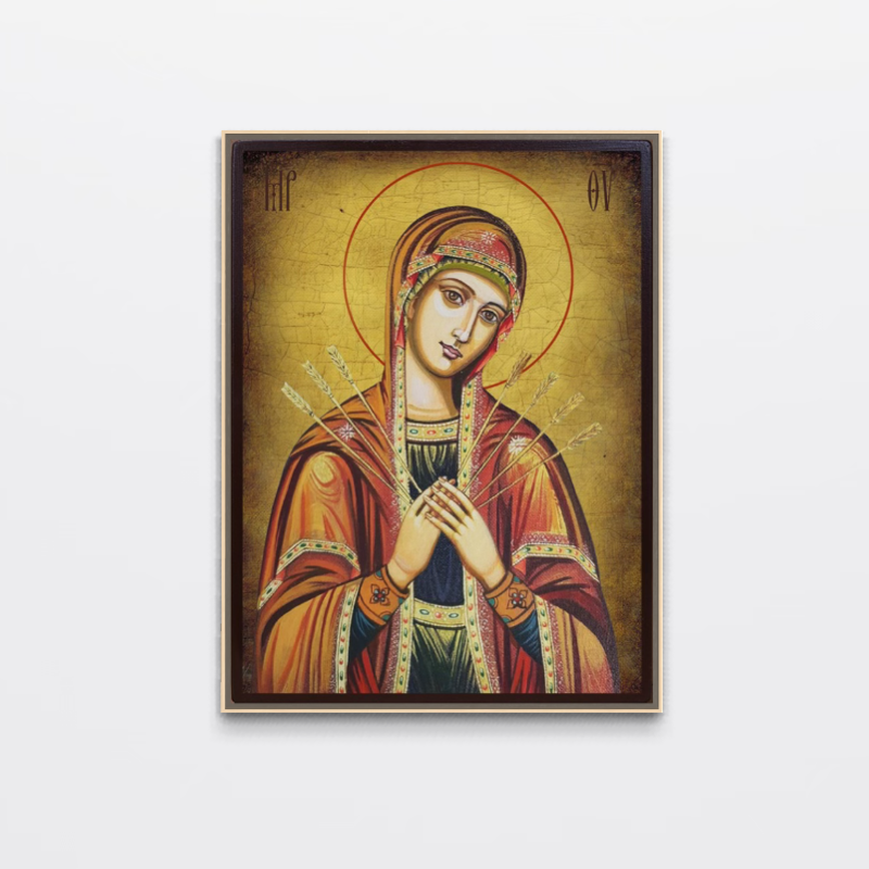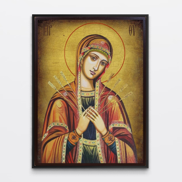 Tablou Canvas Premium, LuxCanva® H1068, Icoana Maicii Domnului cu Sapte Sageti, Icoana, Sageti, Ortodoxie, Protectie, Mantuire, Ajutor, Speranta, Casa, Protectie, Living, Dormitor - 45 X 60