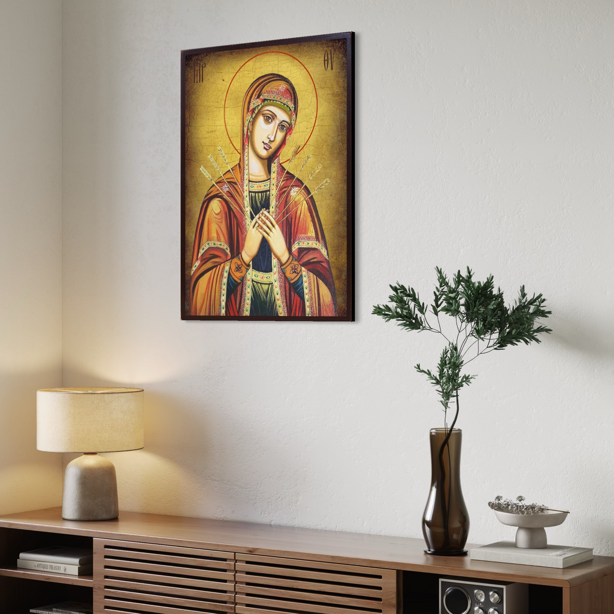 Tablou Canvas Premium, LuxCanva® H1068, Icoana Maicii Domnului cu Sapte Sageti, Icoana, Sageti, Ortodoxie, Protectie, Mantuire, Ajutor, Speranta, Casa, Protectie, Living, Dormitor