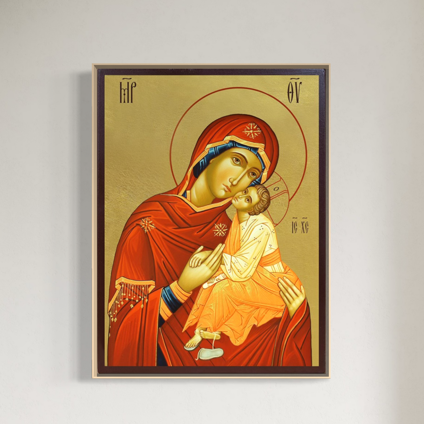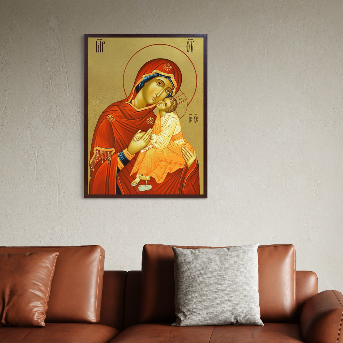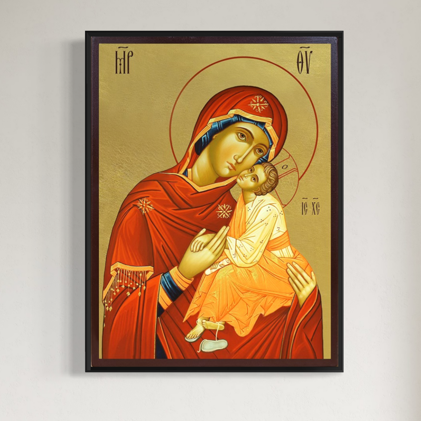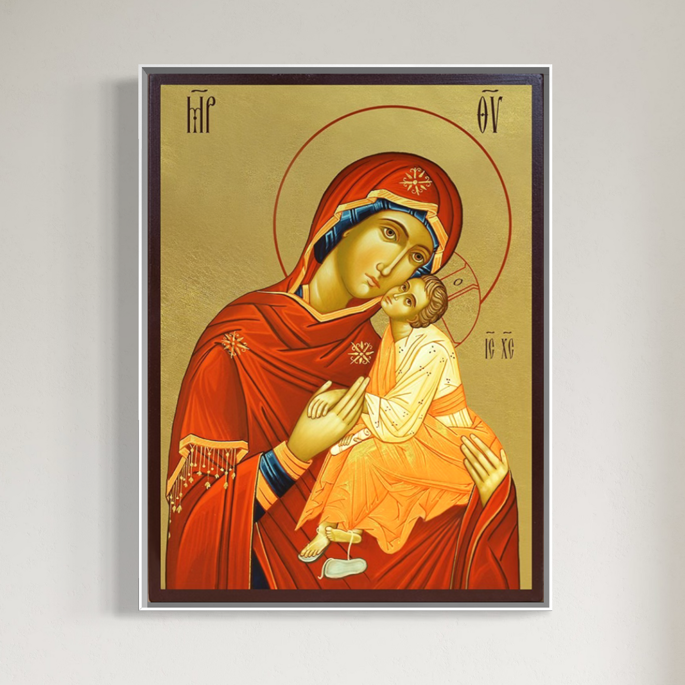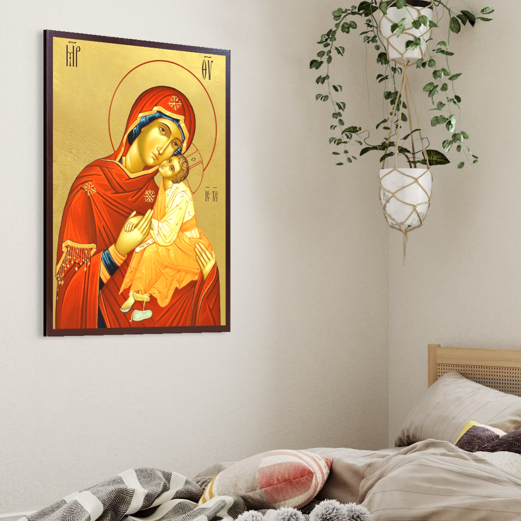 Tablou Canvas Premium, LuxCanva® H1072, Icoana Maicii Domnului Dulcea Sarutare, Icoana, Facatoare, Minuni, Prunc, Iisus, Mantuire, Mangaiere, Casa, Protectie, Living, Dormitor - 45 X 60