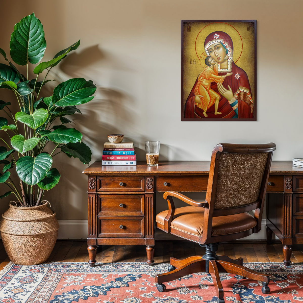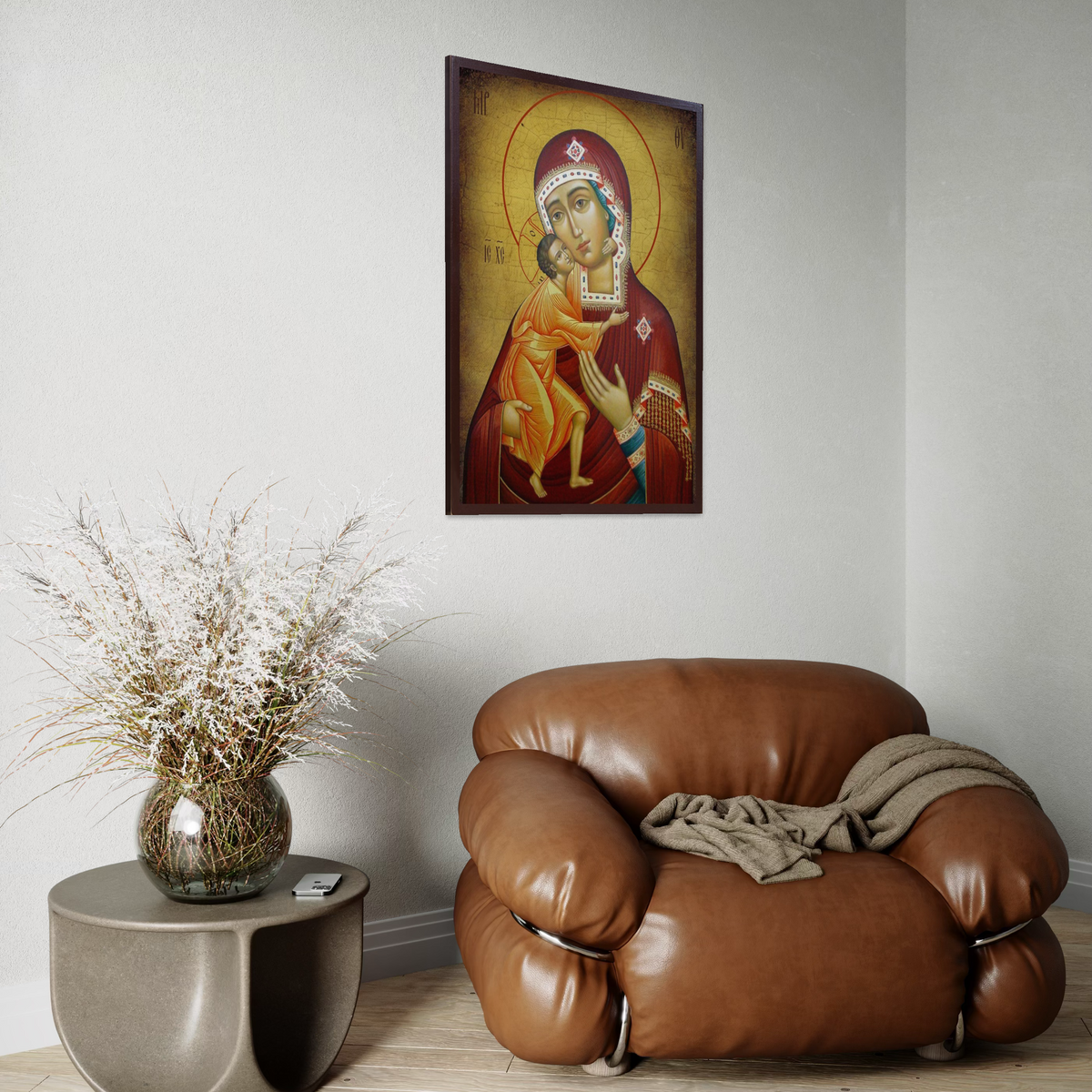 Tablou Canvas Premium, LuxCanva® H1073, Maica Domnului Feodorovskaia, Icoana, Facatoare, Minuni, Tamaduitoare, Mantuire, Mangaiere, Casa, Protectie, Living, Dormitor