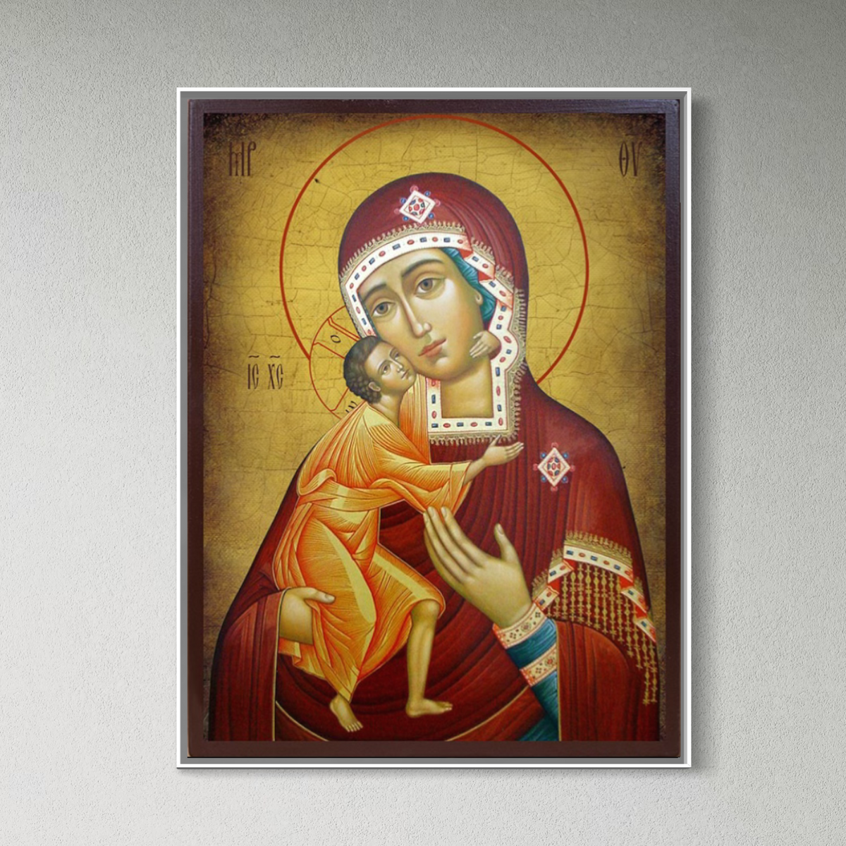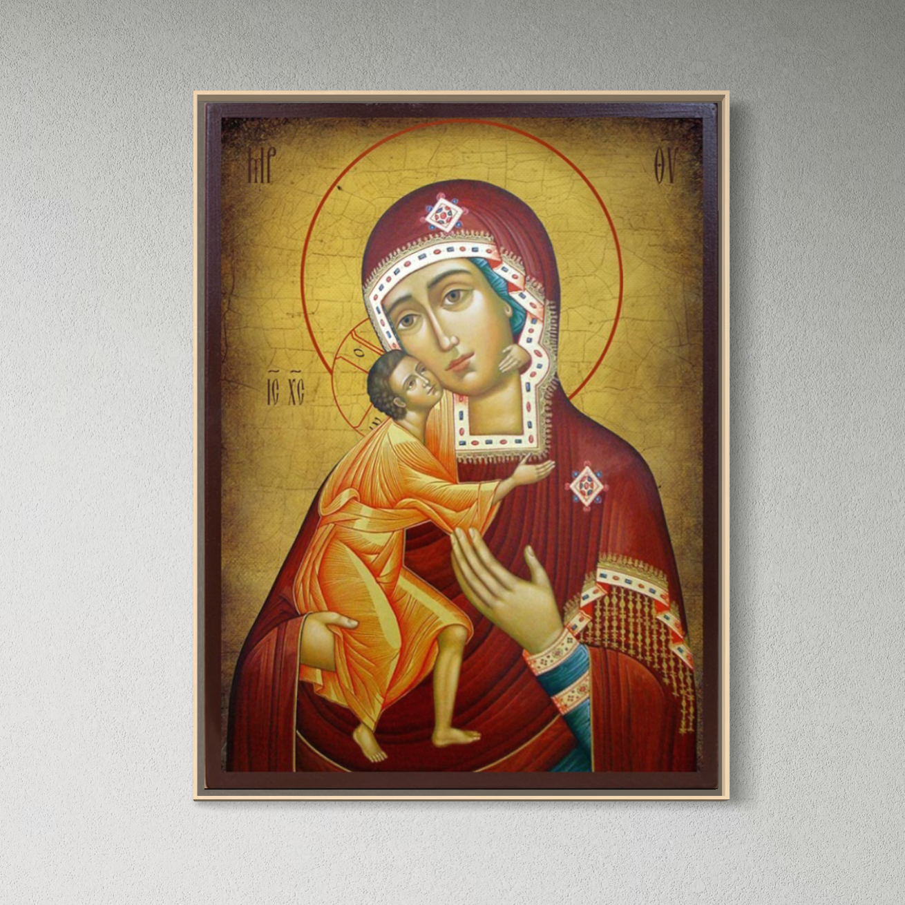 Tablou Canvas Premium, LuxCanva® H1073, Maica Domnului Feodorovskaia, Icoana, Facatoare, Minuni, Tamaduitoare, Mantuire, Mangaiere, Casa, Protectie, Living, Dormitor - 45 X 60