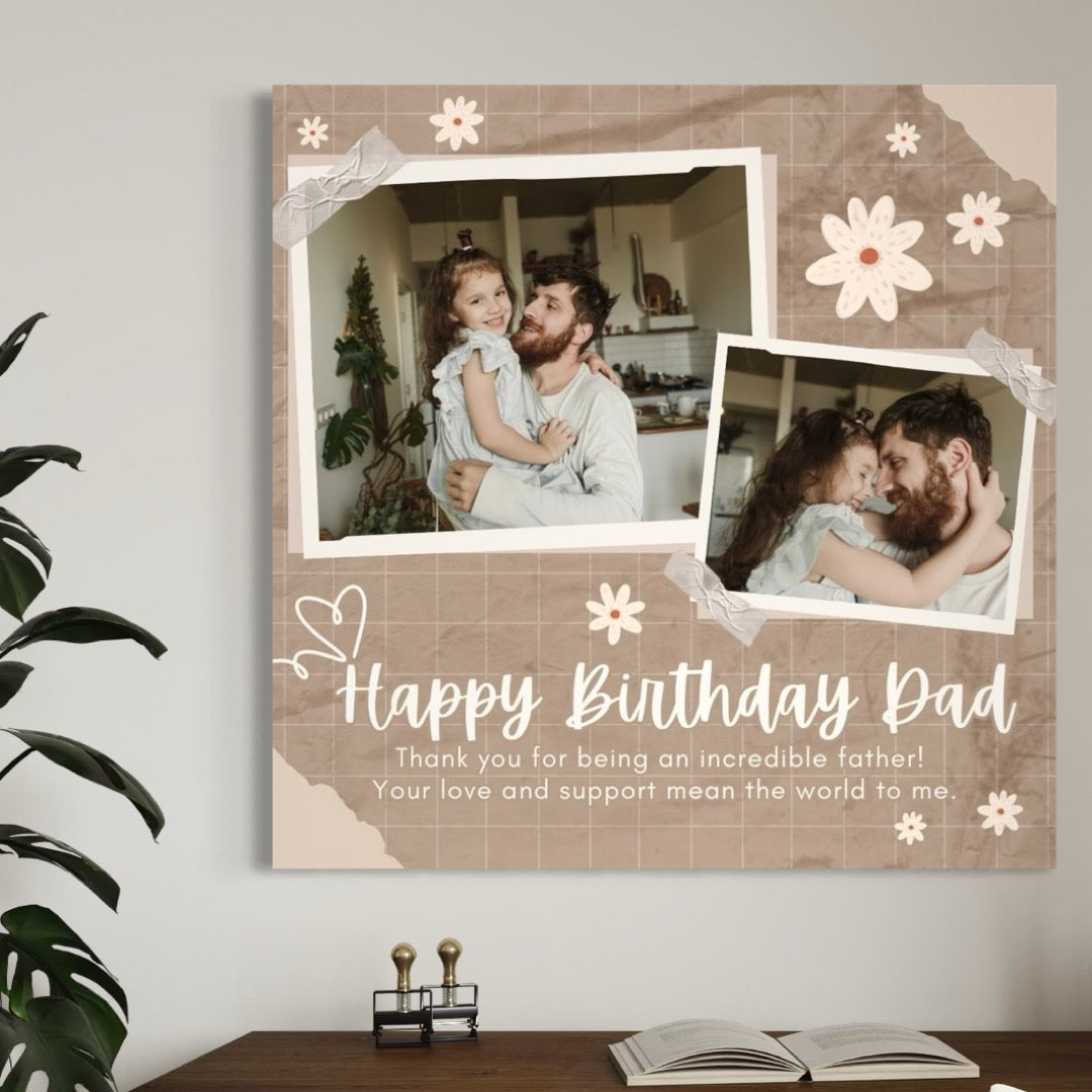 Tablou Canvas Personalizat cu 2 Poze Pentru Tata "Happy Birthday Dad", PS176 - 40 X 40