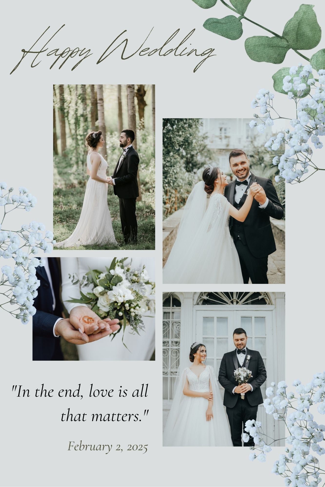 Tablou Canvas Personalizat cu 4 Poze Pentru Nunta "Happy Wedding", PS201 - 40 X 60