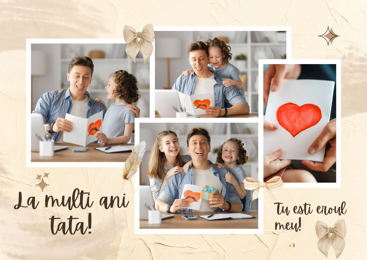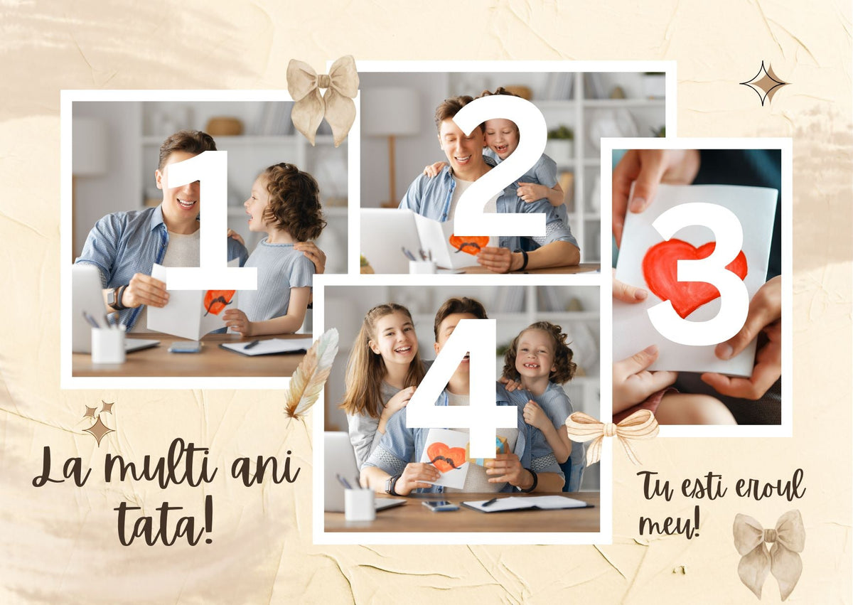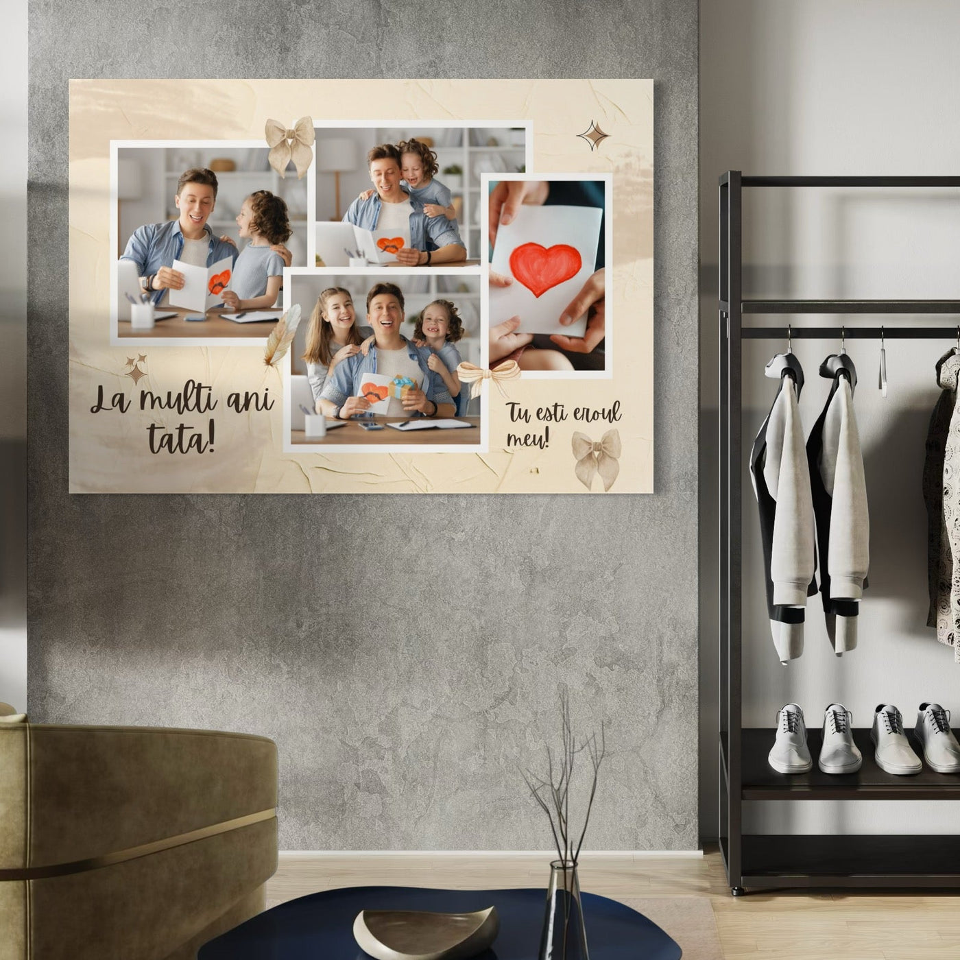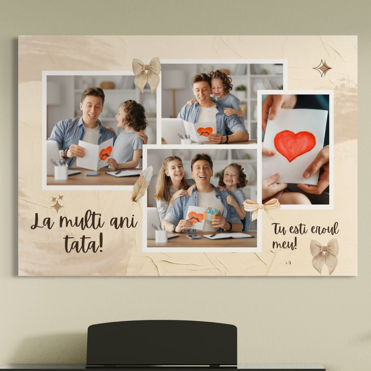 Tablou Canvas Personalizat cu 4 Poze Pentru Tata "La Multi Ani Tata", PS160 - 40 X 55