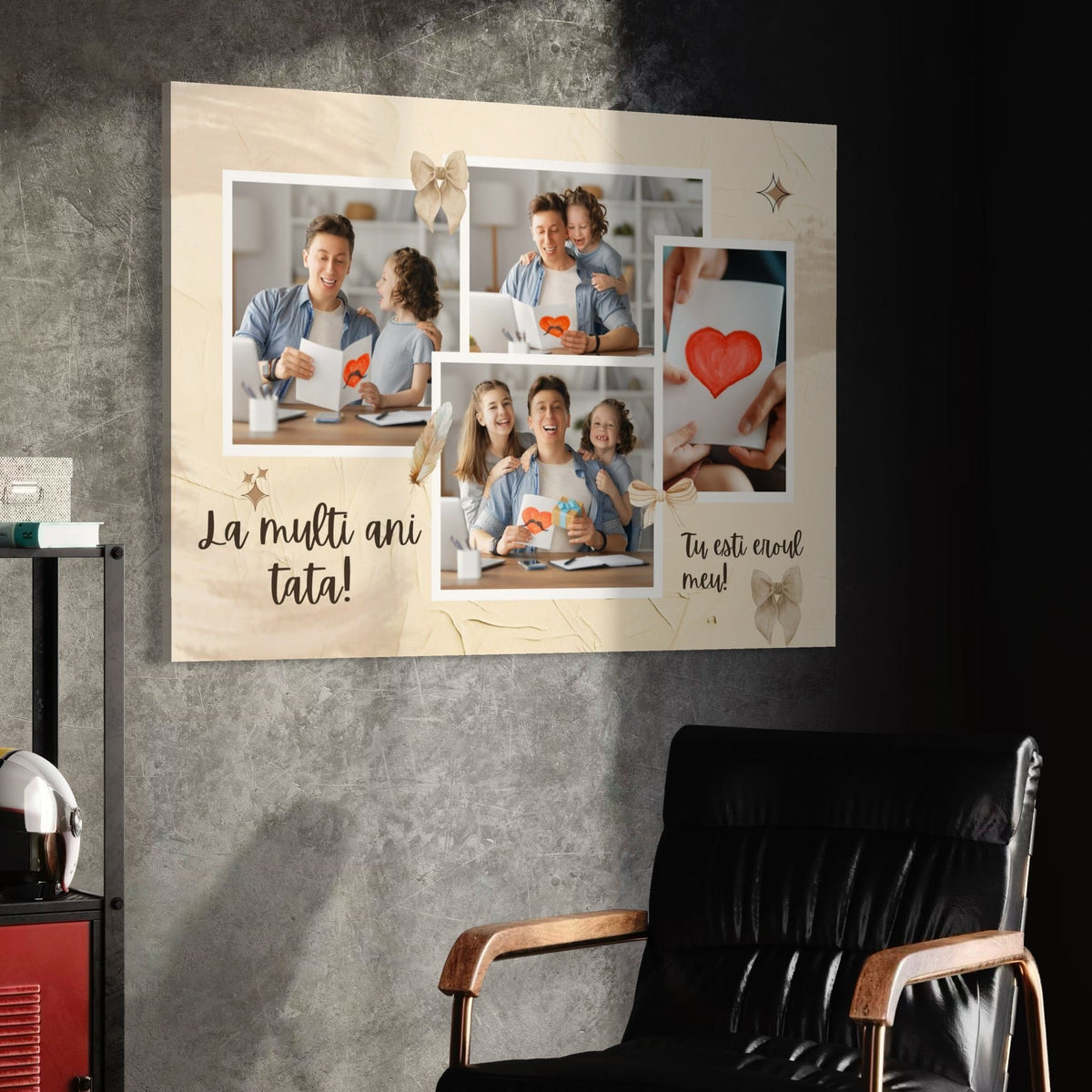 Tablou Canvas Personalizat cu 4 Poze Pentru Tata "La Multi Ani Tata", PS160