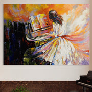 Tablou Canvas Premium LuxCanva® B1114, Fata Cantand La Pian , Muzica, Pian, Living, Portativ, Dormitor, Clape, Culori Vibrante - 50 X 70