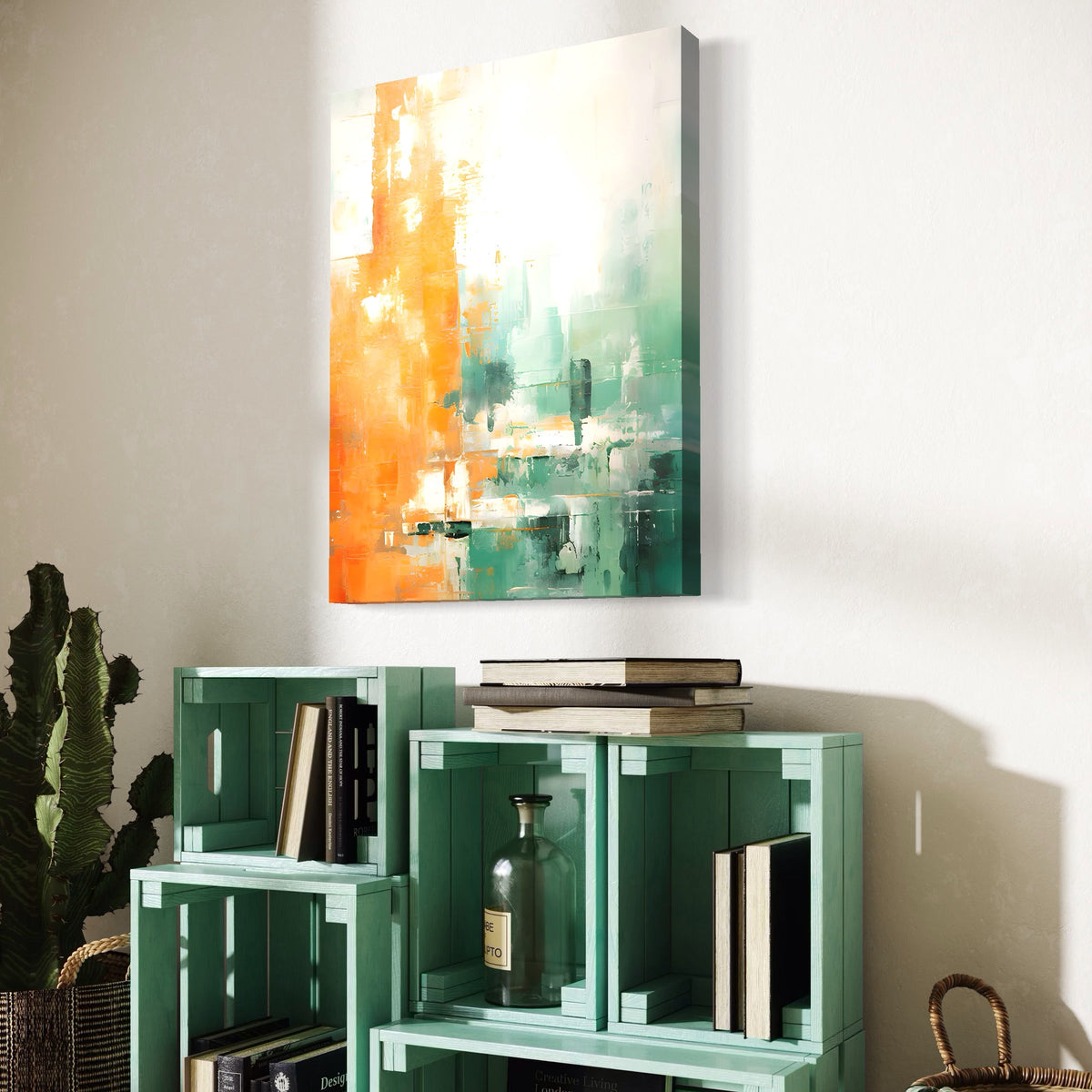 Tablou Canvas Premium LuxCanva® A1605, Imbratisare De Contrast , Living, Abstract, Decorativ, Orange, Dormitor, Culori Vibrante - 45 X 60