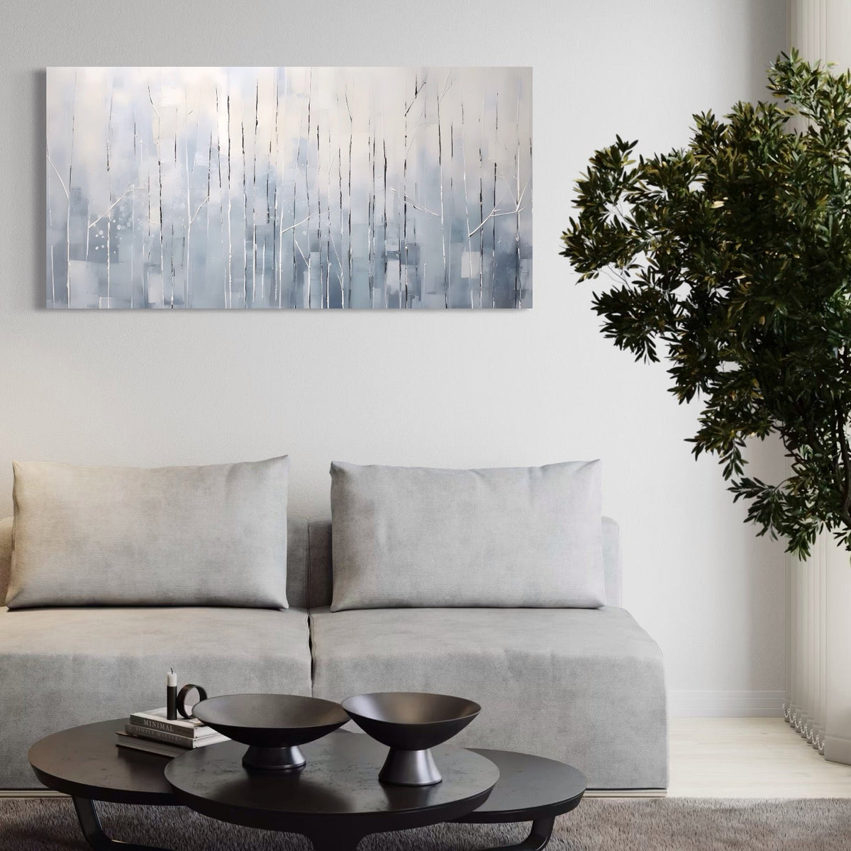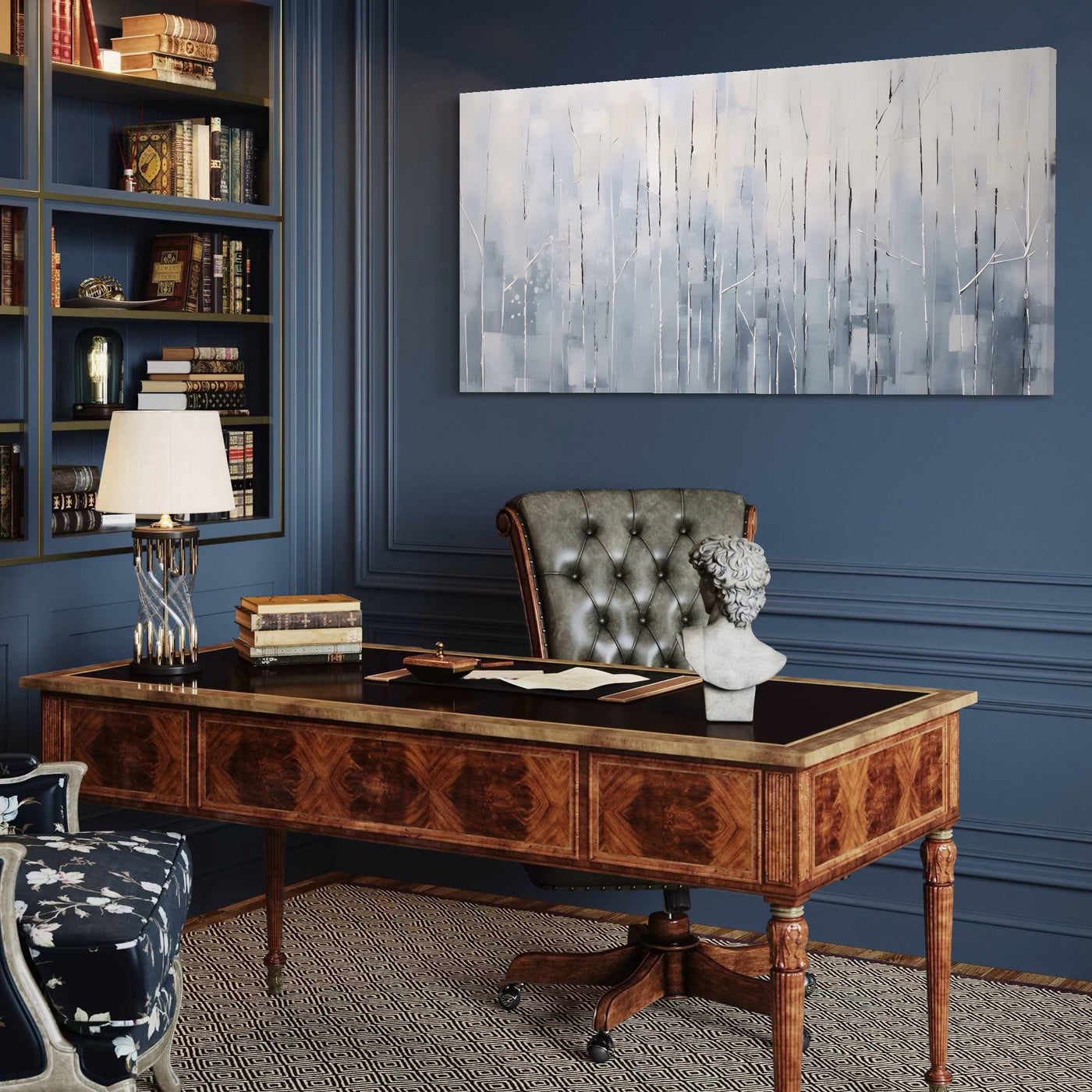Tablou Canvas Premium LuxCanva® A1617, Vis De Iarna , Room, Copaci, Fulgi De Zapada, Abstract, Decorativ, Dormitor, Culori Vibrante - 50 X 100