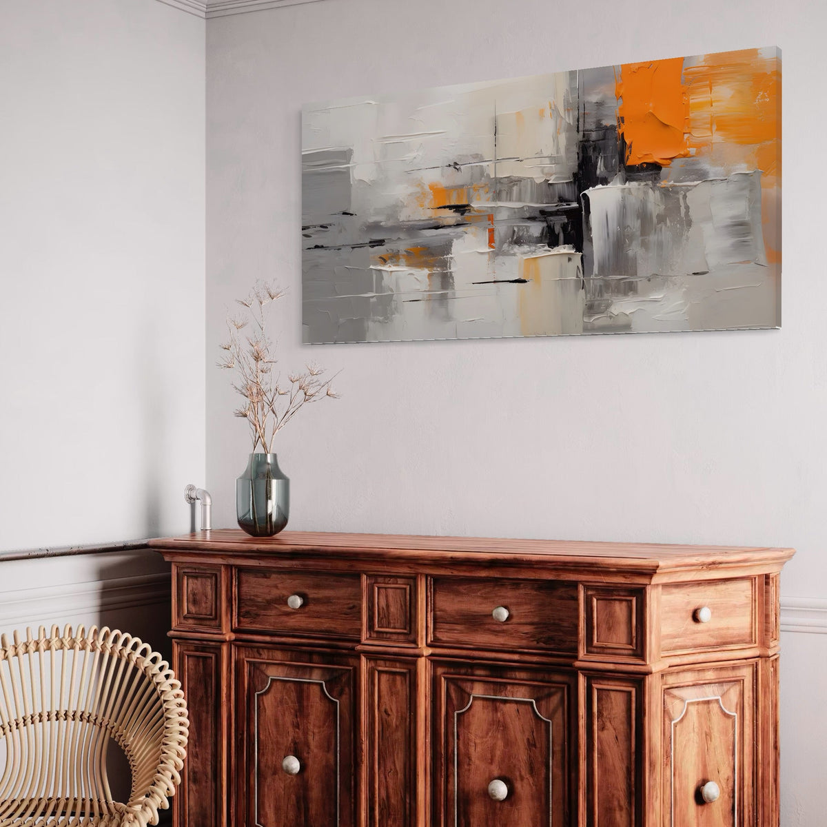 Tablou Canvas Premium LuxCanva® A1620, Color Gray And Orange , Living, Cromatic, Compozitie, Decorativ, Dormitor, Culori Vibrante - 50 X 100