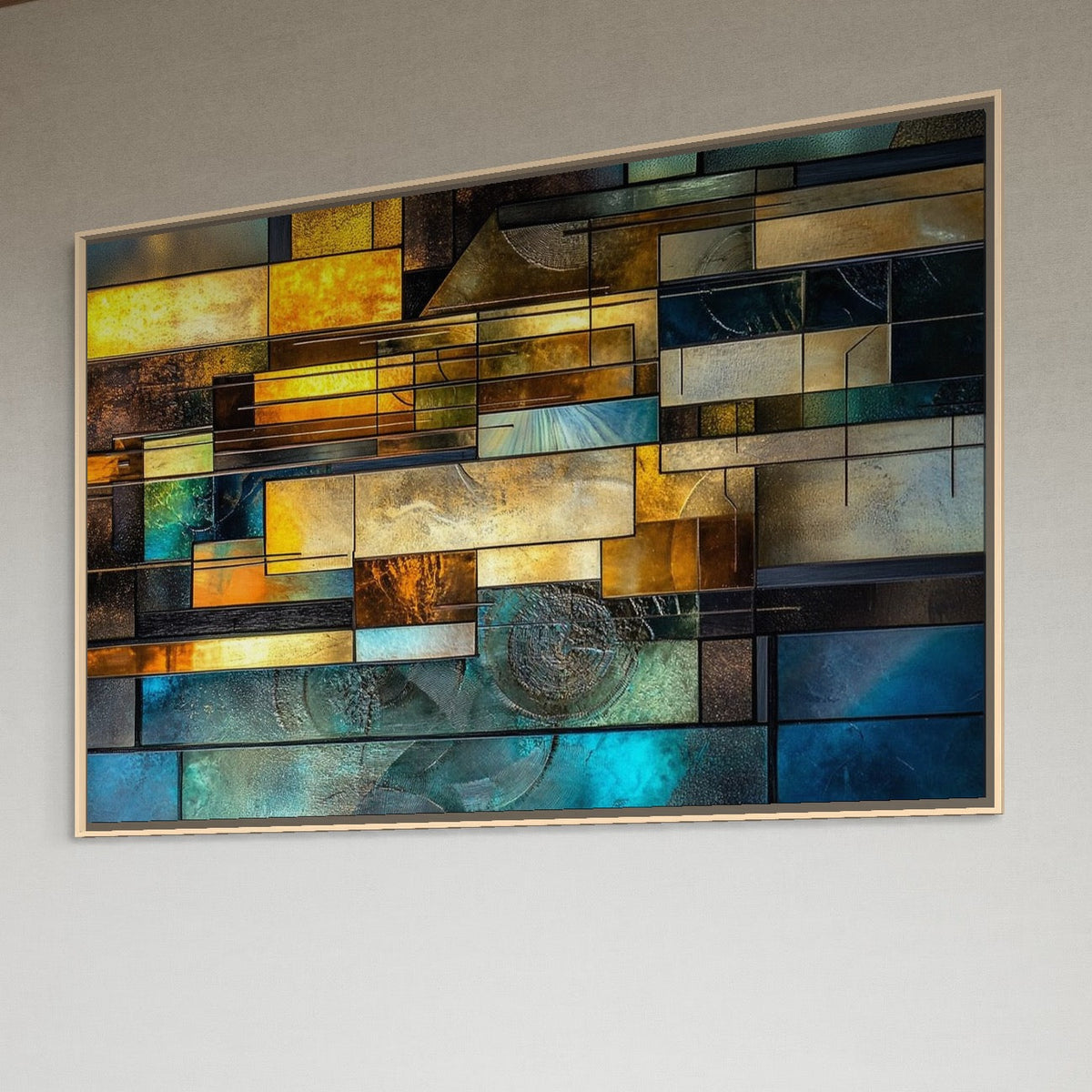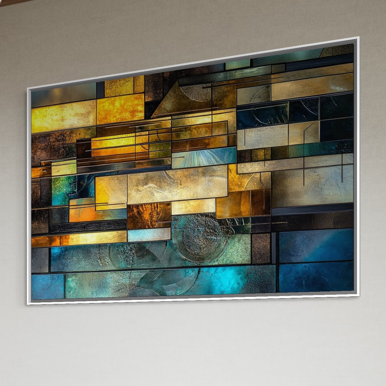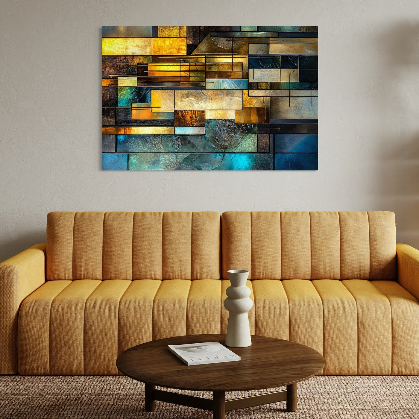 Tablou Canvas Premium, LuxCanva® C1288, Orase Nevazute, Geometrie, Culori, Abstract, Aur, Turcoaz, Metal, Apa, Memorii, Liniste, Planuri, Timp, Harti, Fragment, Orizont, Birou, Living, Dormitor - 40 X 60