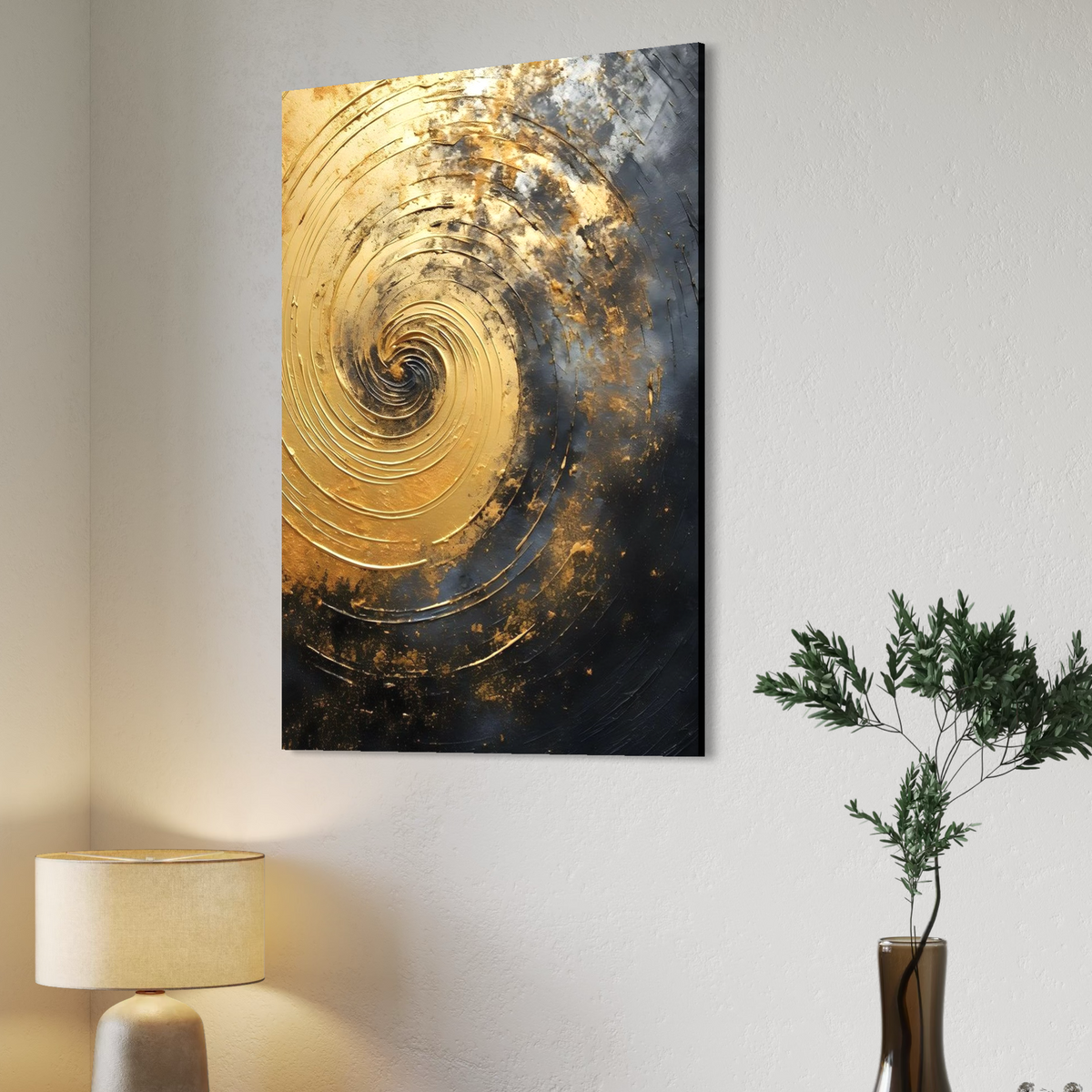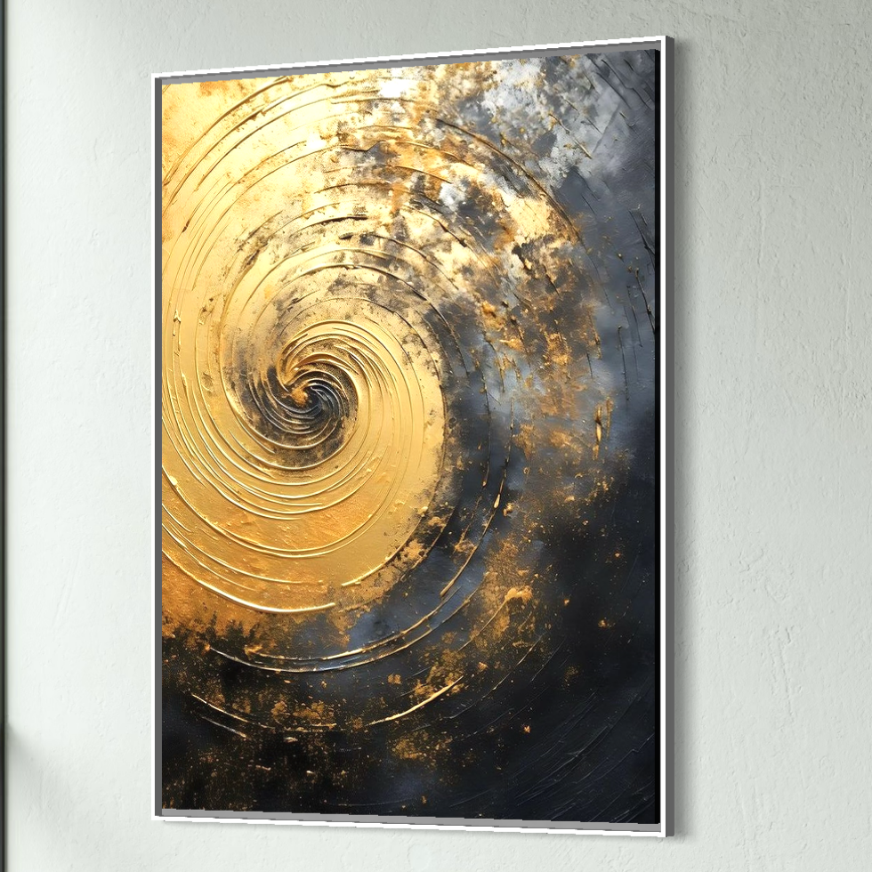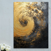 Tablou Canvas Premium, LuxCanva® C1296, Timp in rotatie, Abstract, Aur, Negru, Spirala, Centru, Univers, Memorie, Rotire, Haos, Decoratiune, Cosmologic, Mister, Uragan, Birou, Living, Dormitor - 45 X 60