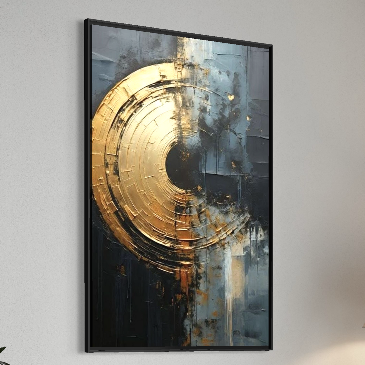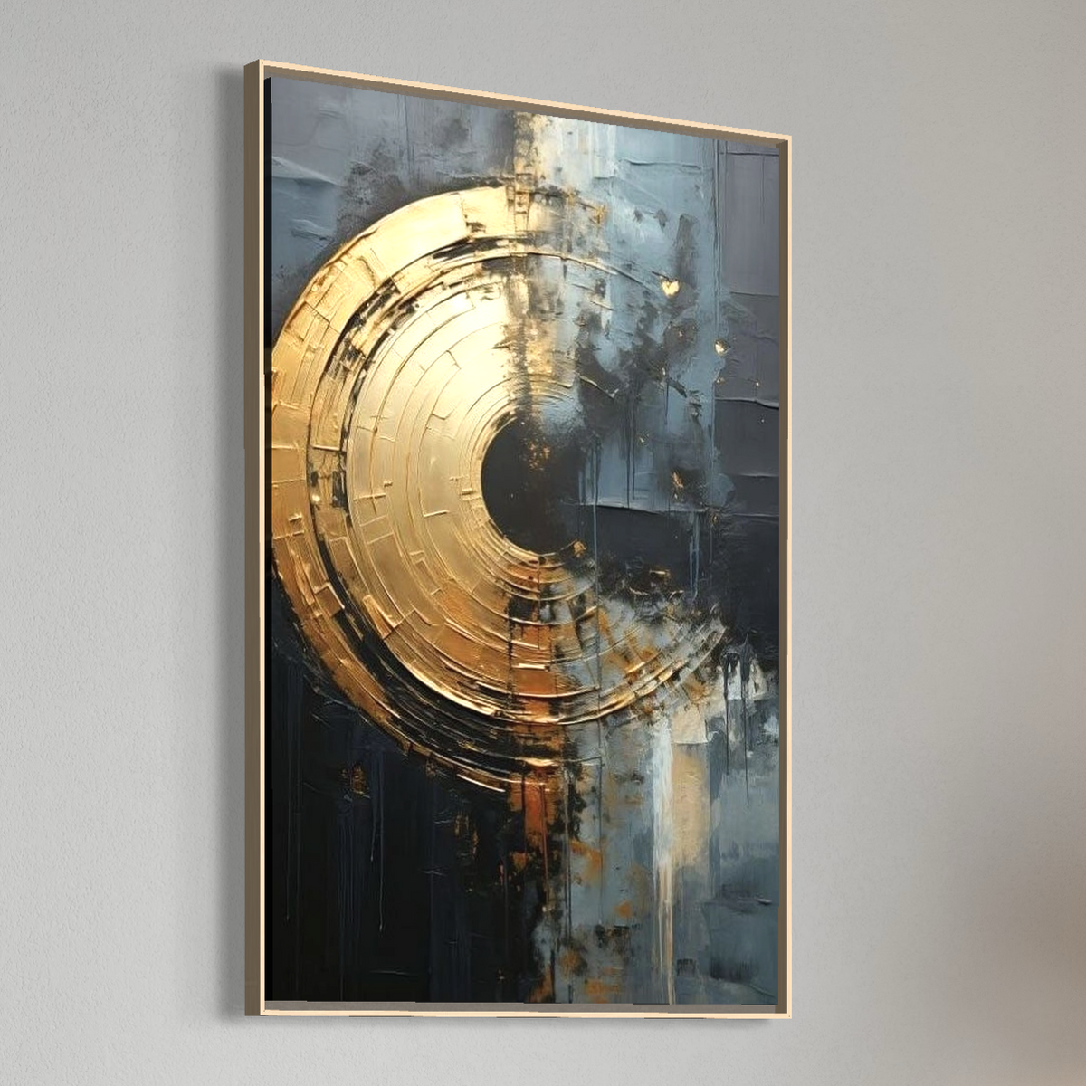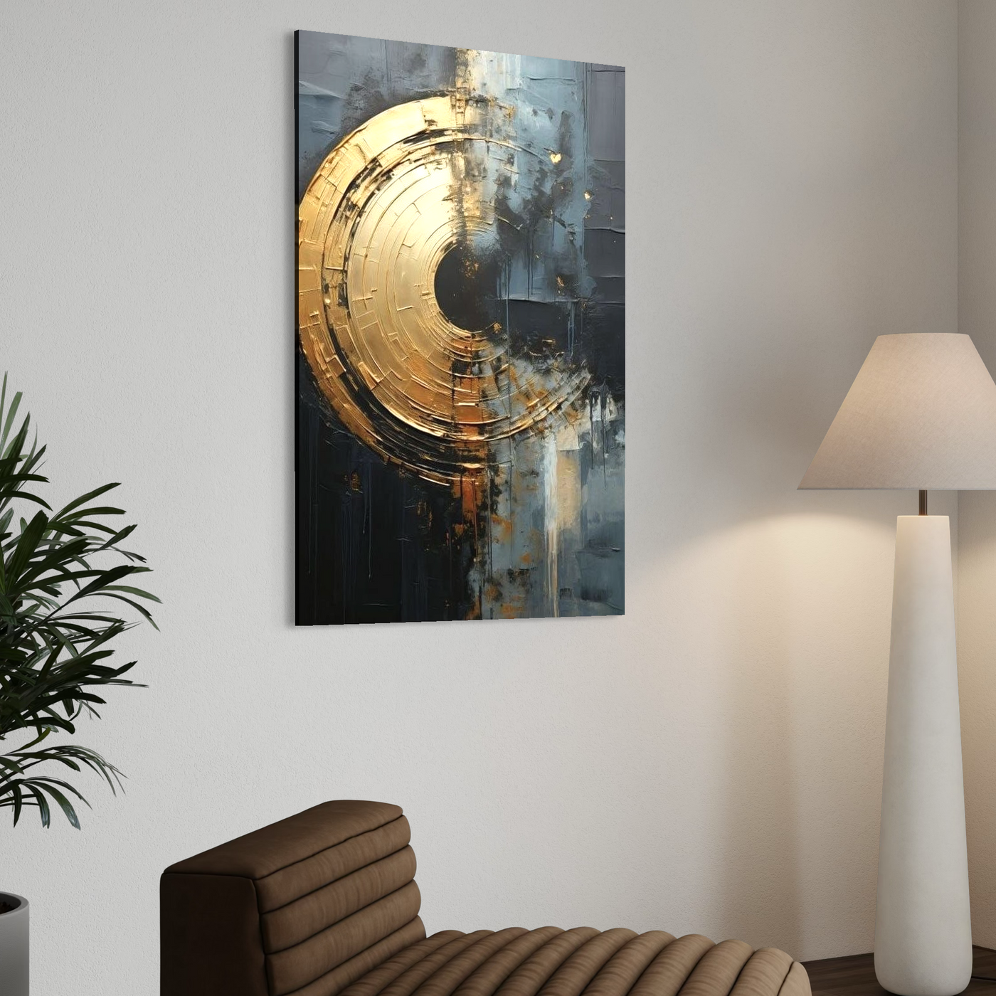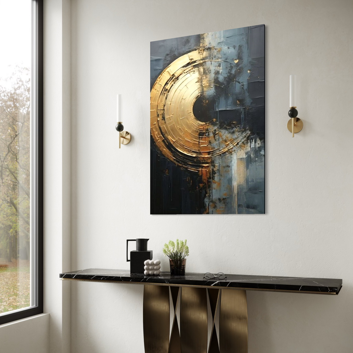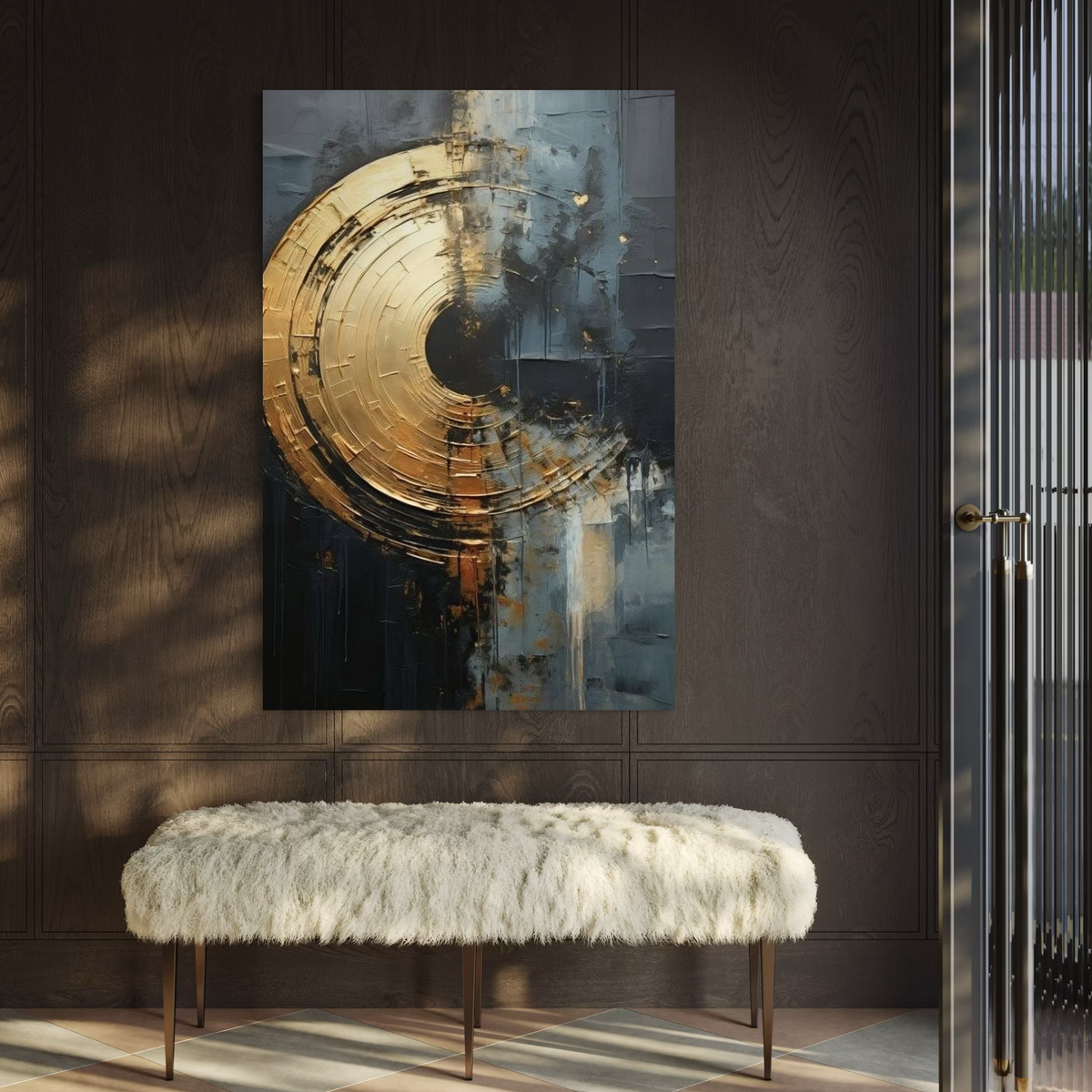 Tablou Canvas Premium, LuxCanva® C1297, Poarta de aur, Abstract, Aur, Negru, Spirala, Centru, Univers, Cerc, Prag, Gravitatie, Sacru, Topografie, Cercuri, Arhitecturi, Birou, Living, Dormitor - 40 X 60