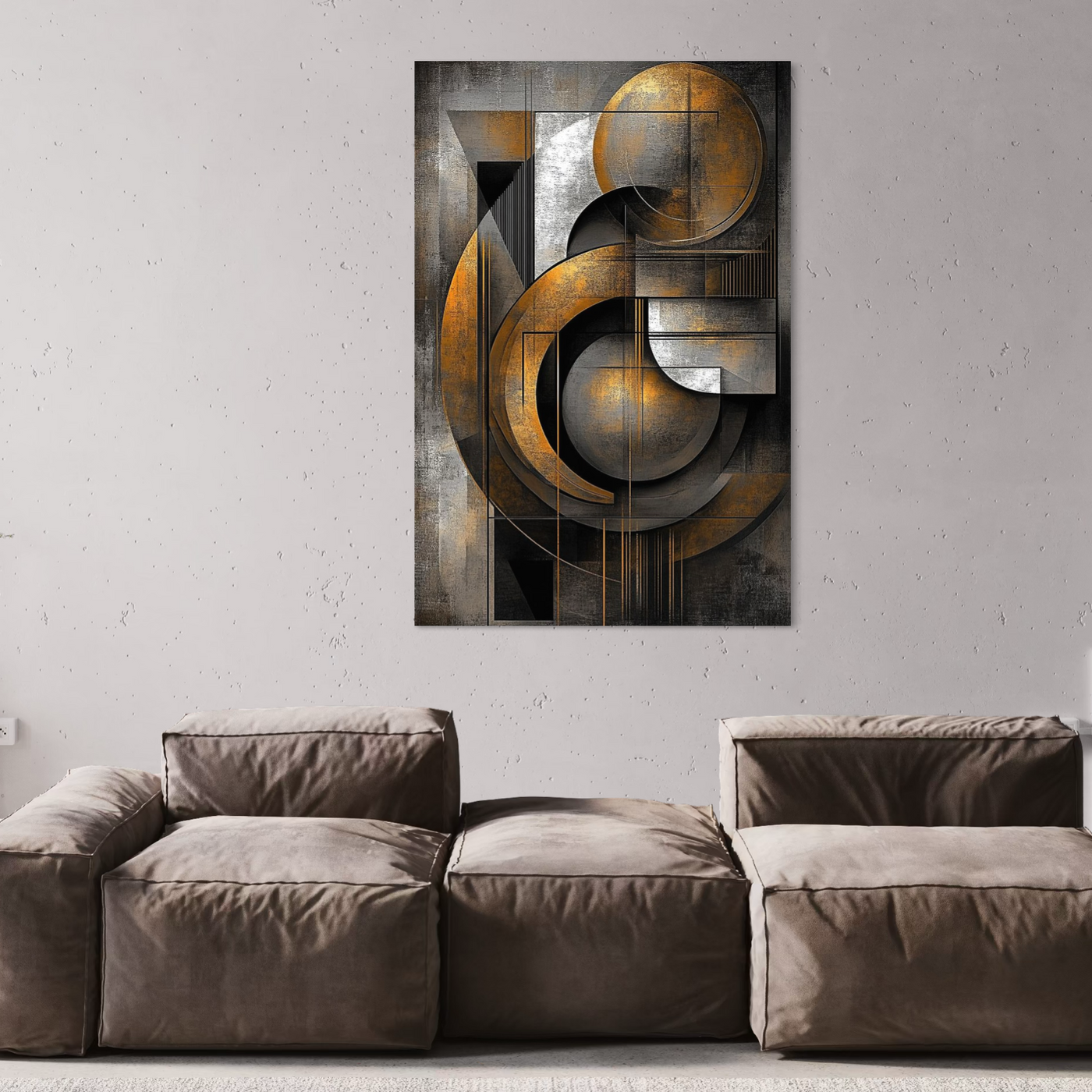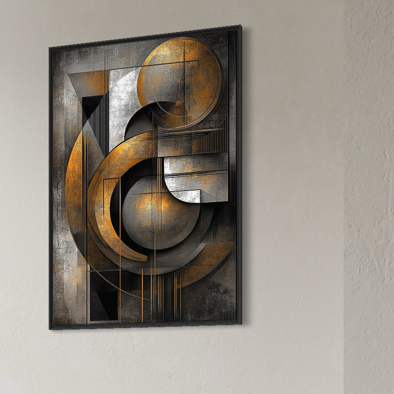 Tablou Canvas Premium, LuxCanva® C1298, Cercul care tine lumea, Abstract, Auriu, Negru, Gri, Geometrie, Respiratie, Echilibru, Gravitatie, Ritual, Calm, Stabilitate, Materie, Birou, Living, Dormitor