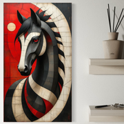 Tablou Canvas Premium, LuxCanva® C1303, Calul din foc si umbra, Geometrie, Culori, Abstract, Rosu, Foc, Linii, Cal, Frumusete, Animal, Veghe, Paznic, Simbol, Design, Arta, Birou, Living, Dormitor - 40 X 70