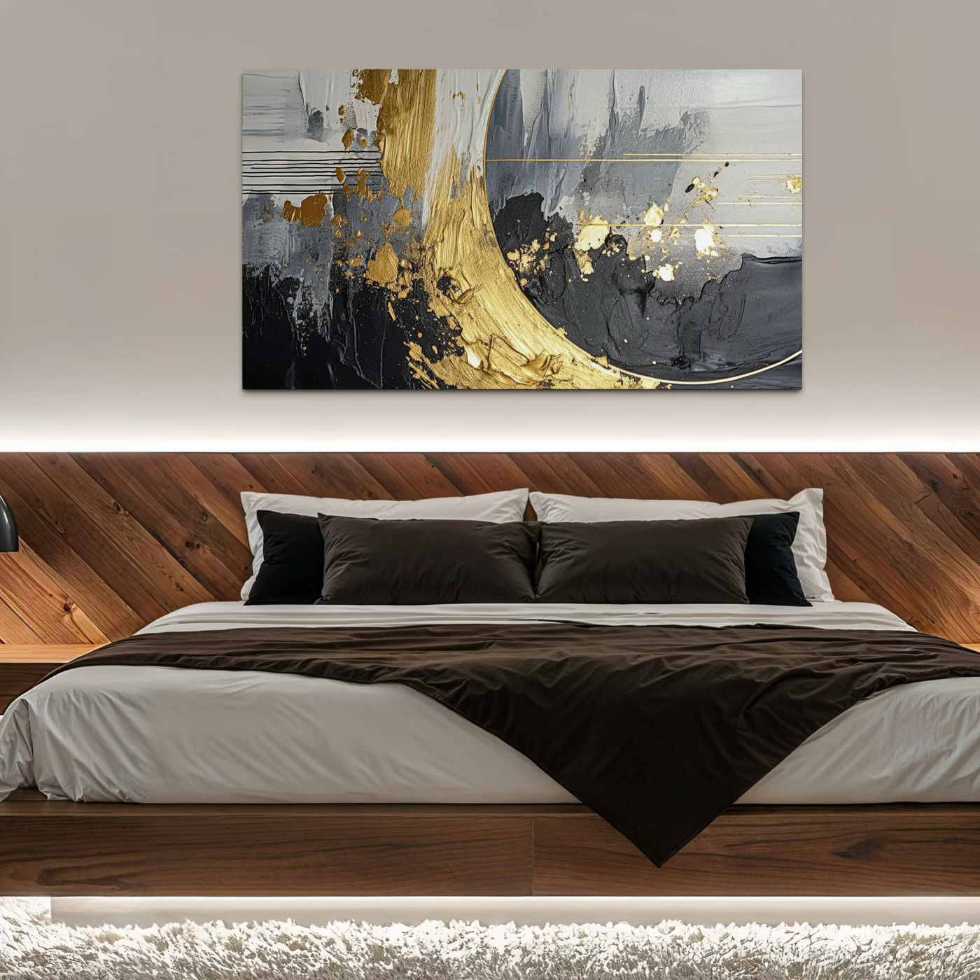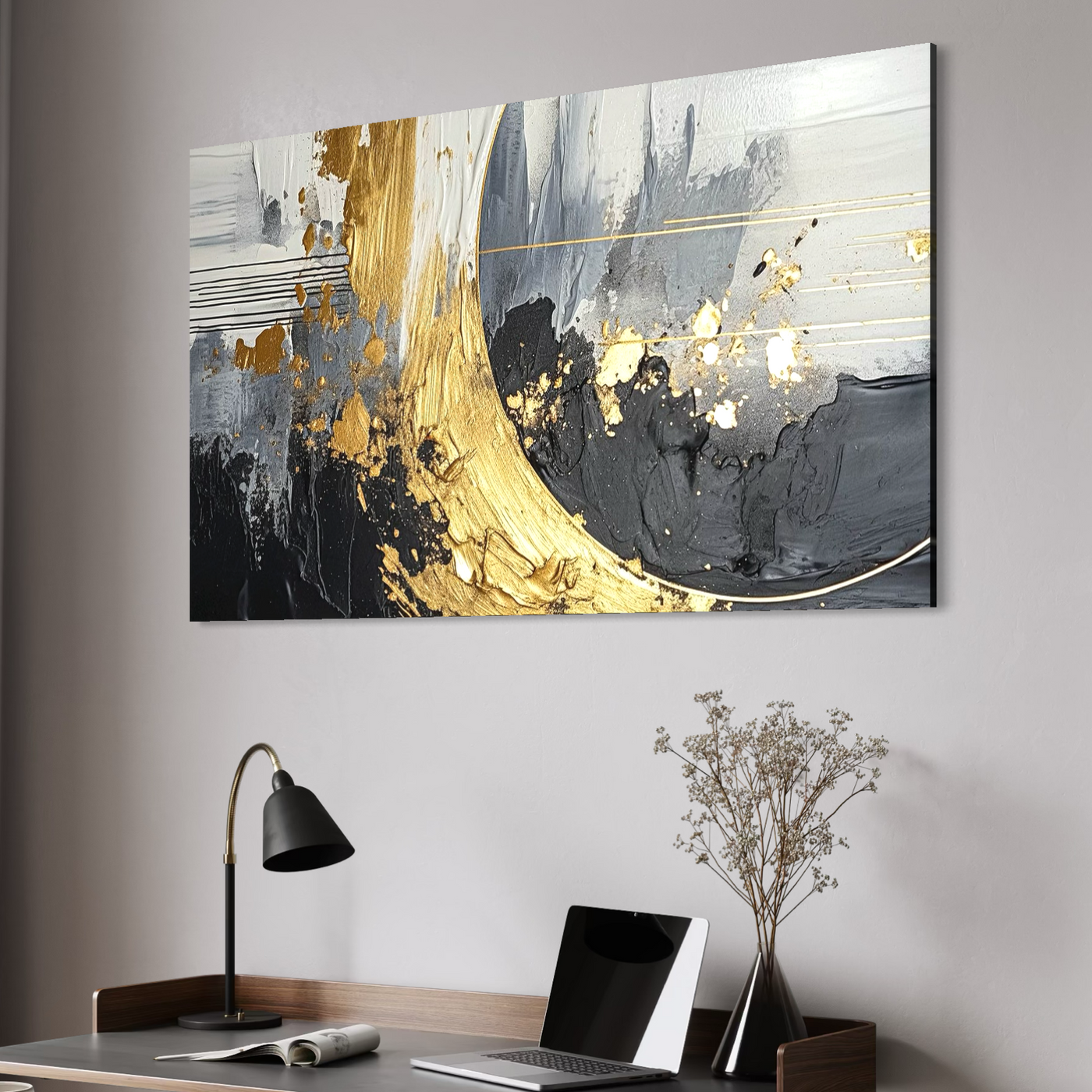 Tablou Canvas Premium, LuxCanva® C1305, Tacere turnata in aur, Geometrie, Culori, Abstract, Auriu, Valuri, Minimalism, Design, Curgere, Miscare, Interior, Expozitie, Arta, Birou, Living, Dormitor