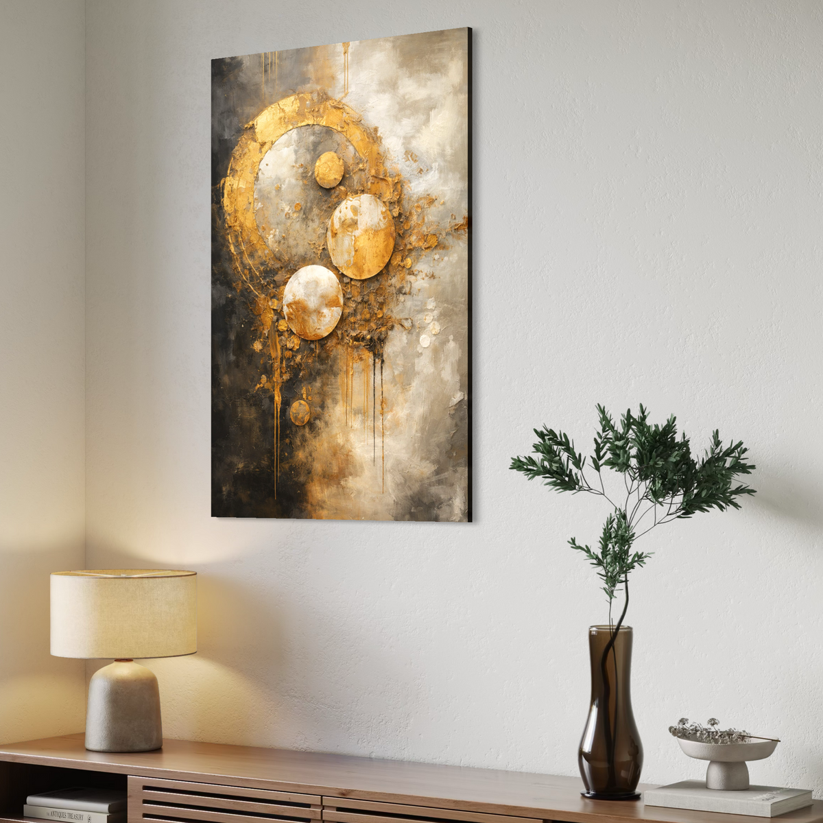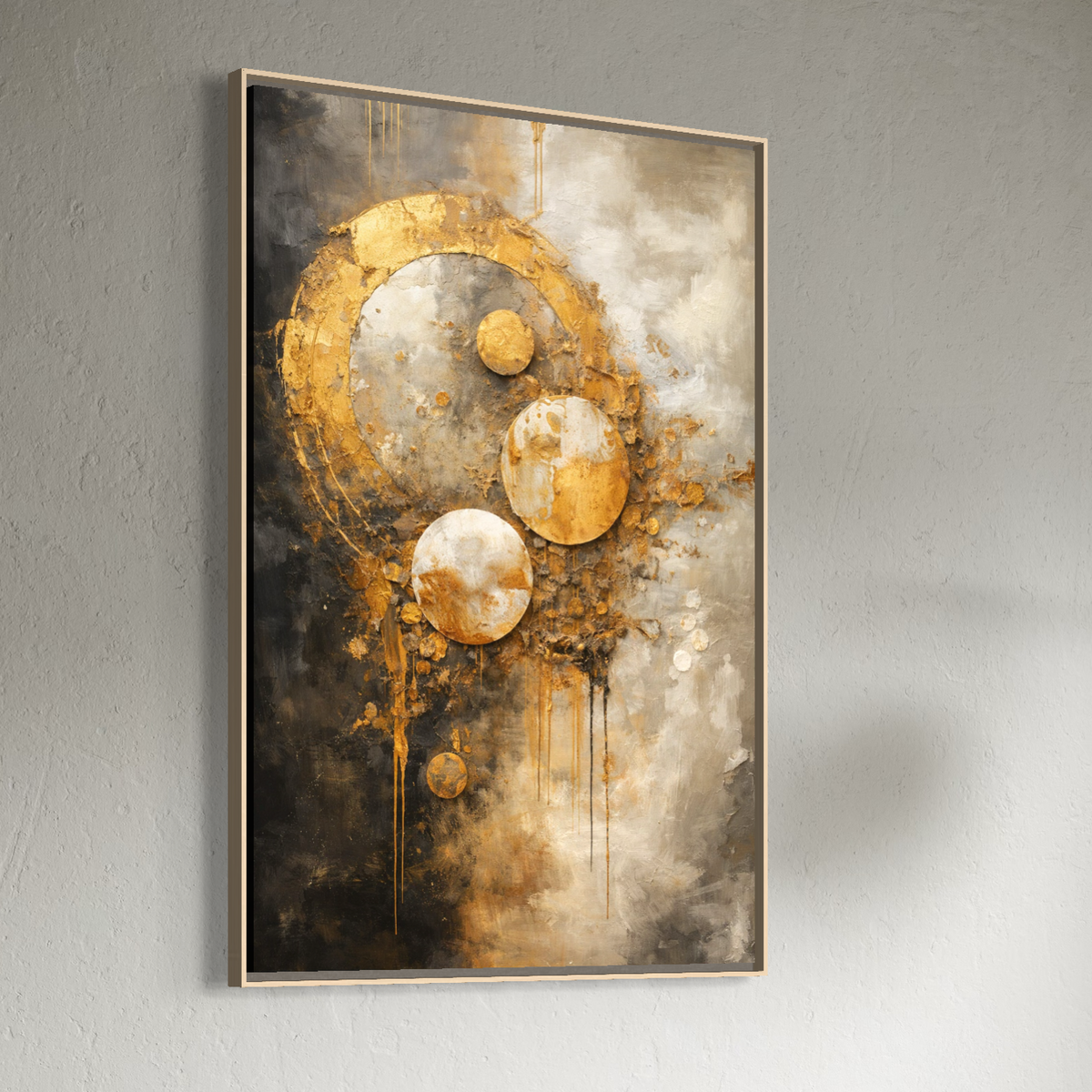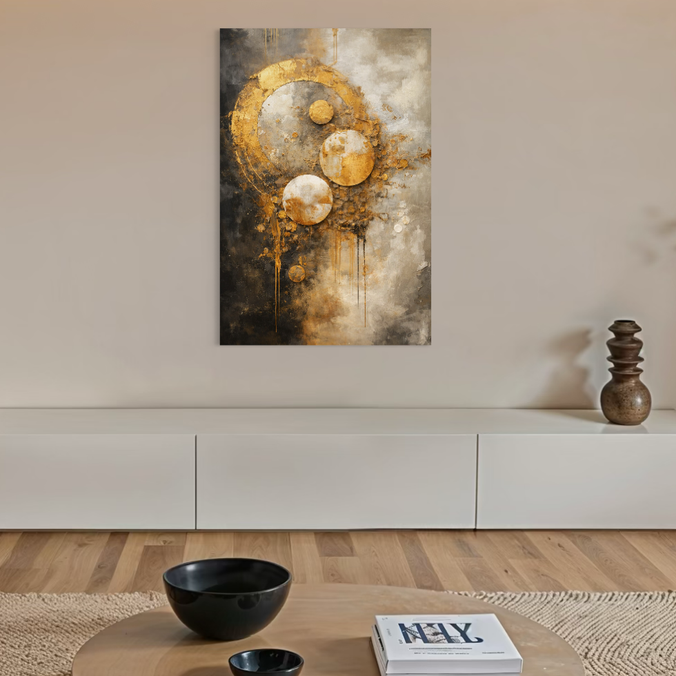 Tablou Canvas Premium, LuxCanva® C1309, Ordinea Nevazuta, Geometrie, Culori, Abstract, Auriu, Cosmos, Materie, Spiritualitate, Sacru, Lumina, Energie, Circular, Compozitie, Birou, Living, Dormitor - 40 X 60