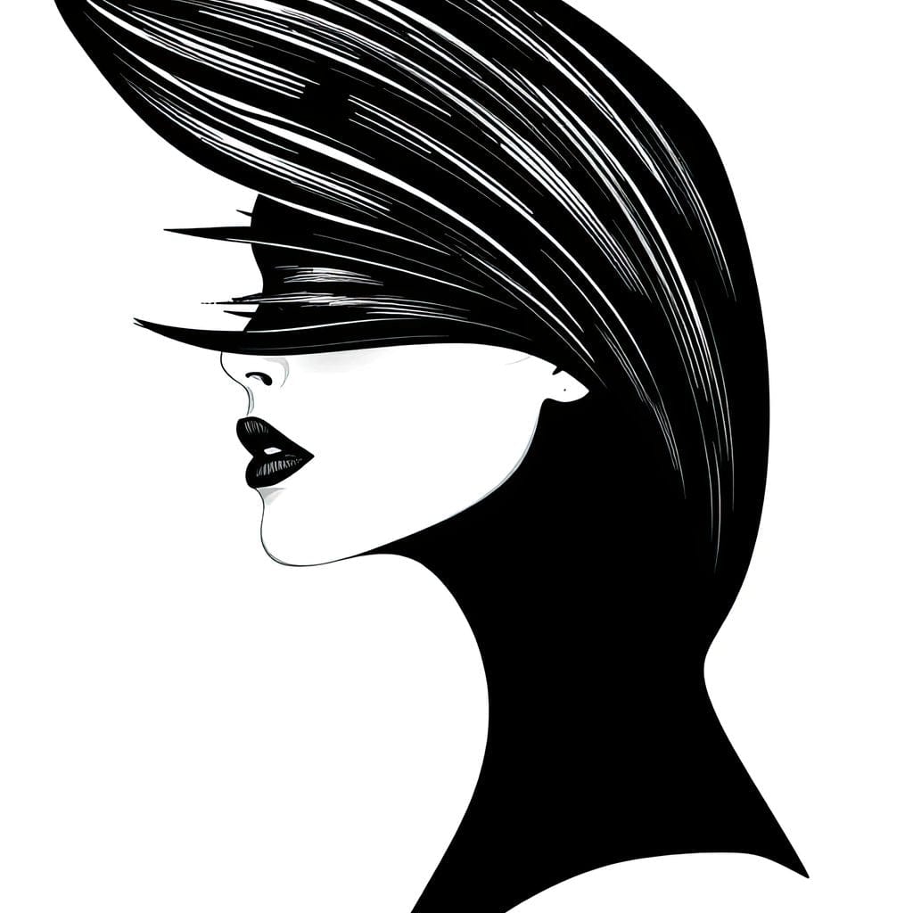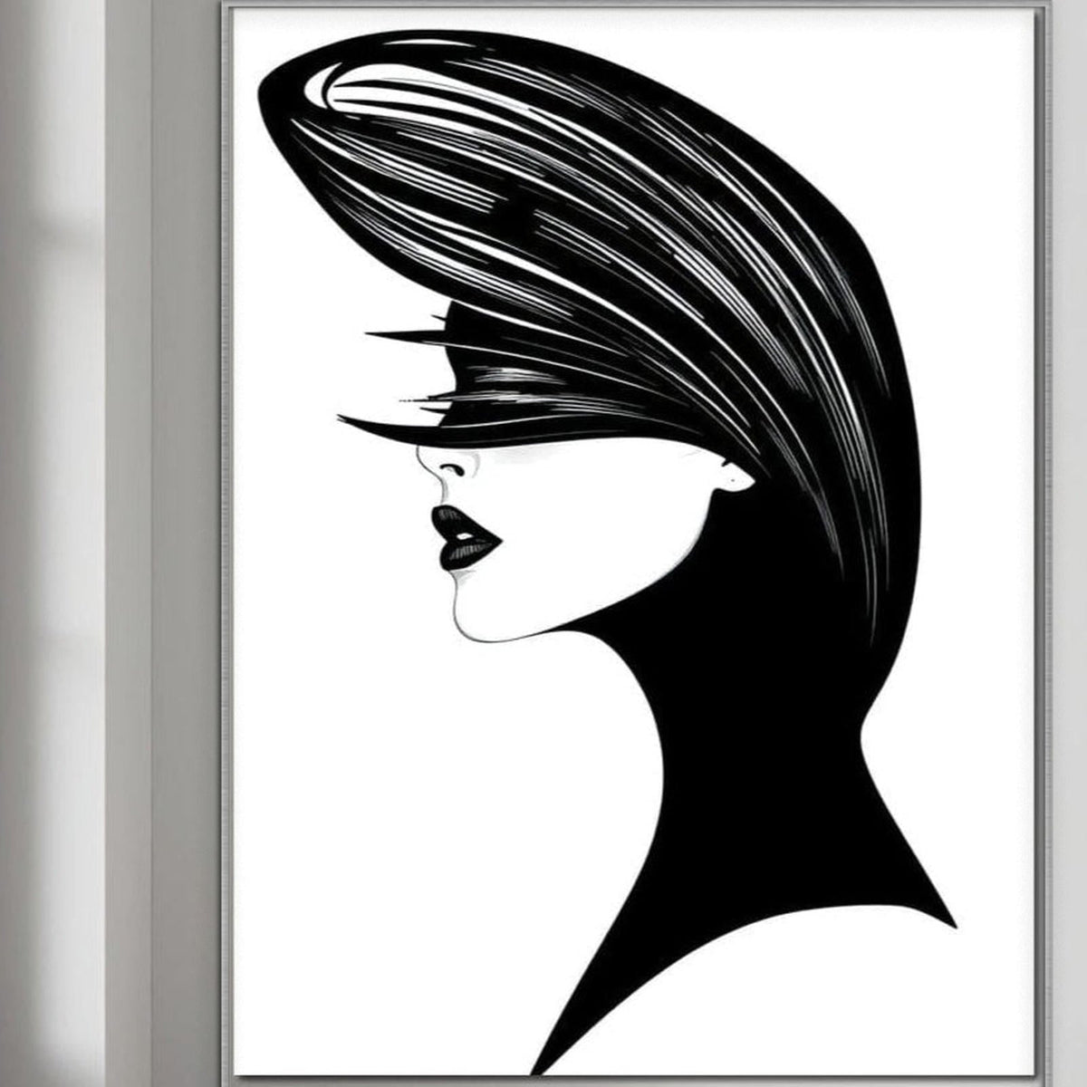 Tablou Canvas Premium, LuxCanva® G1131, Femeia din Umbra,Profil, Mister, Silueta, Stilizat, Alb, Negru, Eleganta, Moda, Arta, Minimalist, Lux, Rafinament, Birou, Living - 45 X 60