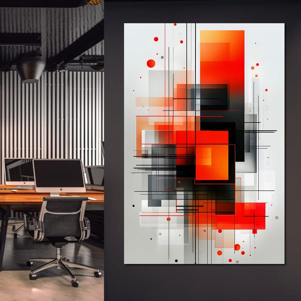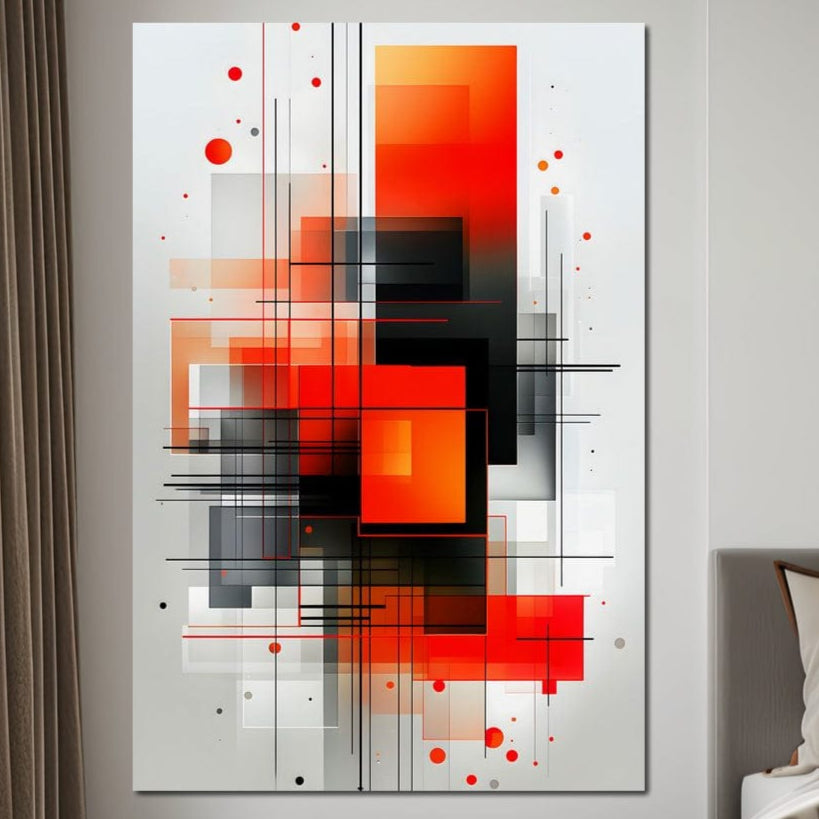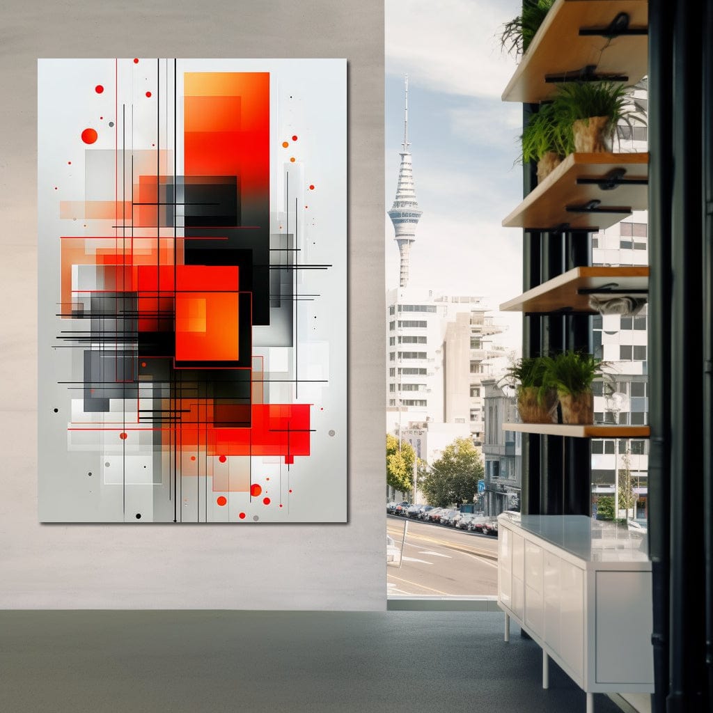 Tablou Canvas Premium, LuxCanva® J1003, Metropola In Rosu, Structuri, Forme, Grile, Linii, Armonie, Digital, Tehnic, Dinamism, Haotic, Industrial, Living, Dormitor - 40 X 60
