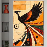 Tablou Canvas Premium, LuxCanva® M1071, Vortexul Pasarii Sacre, Aripi, Coada, Multicolor, Abstract, Modern, Pasari, Phoenix, Linii, Spirala, Renastere, Birou, Living, Camera Copil - 60 X 90