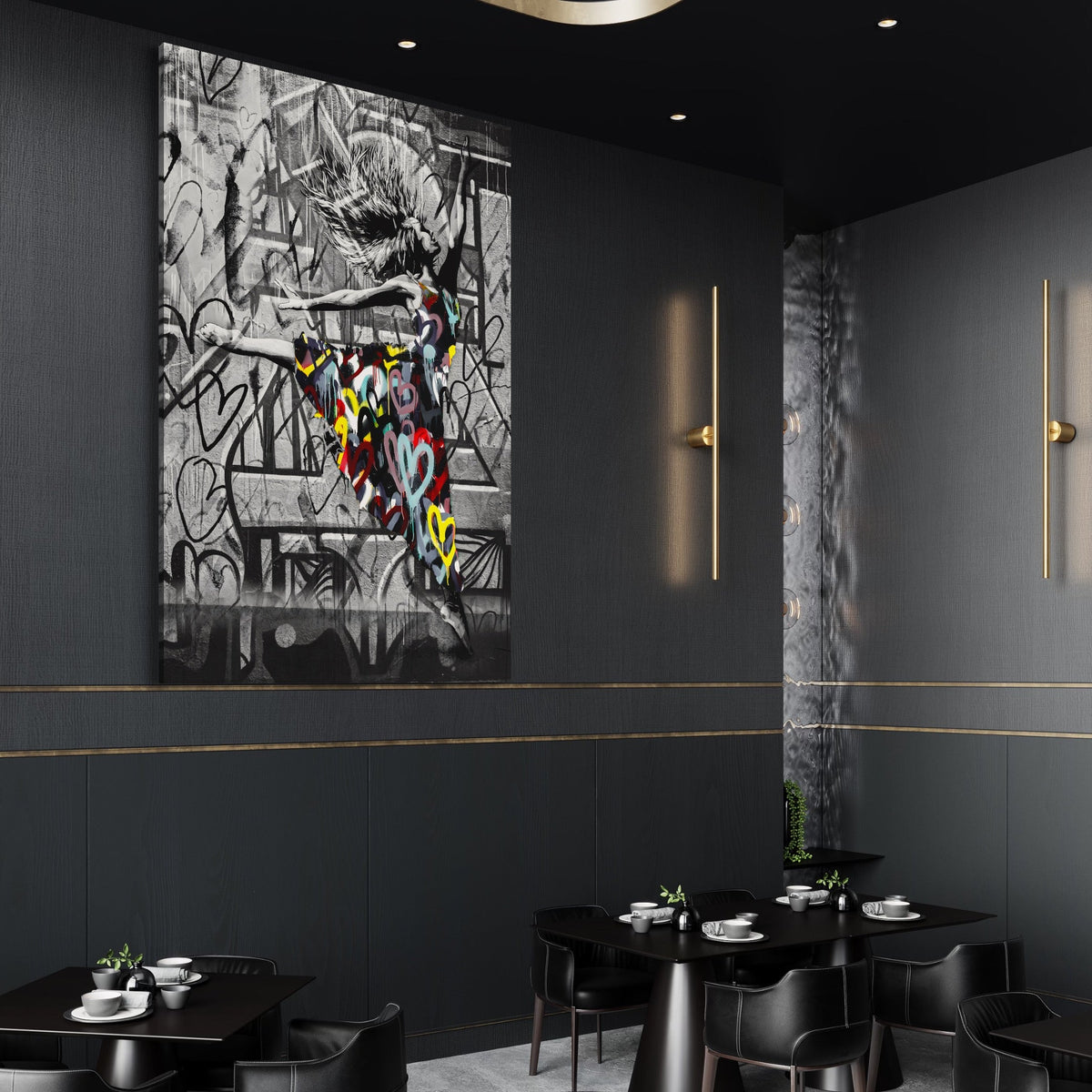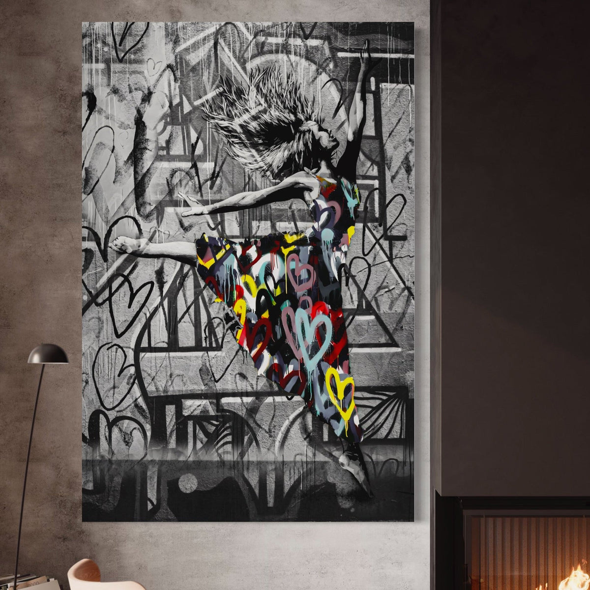 Tablou Canvas Premium LuxCanva® A1193, Beautiful Girl , Dressing, Balerina, Inimi Colorate, Dansatoare, Living, Culori Vibrante - 40 X 60