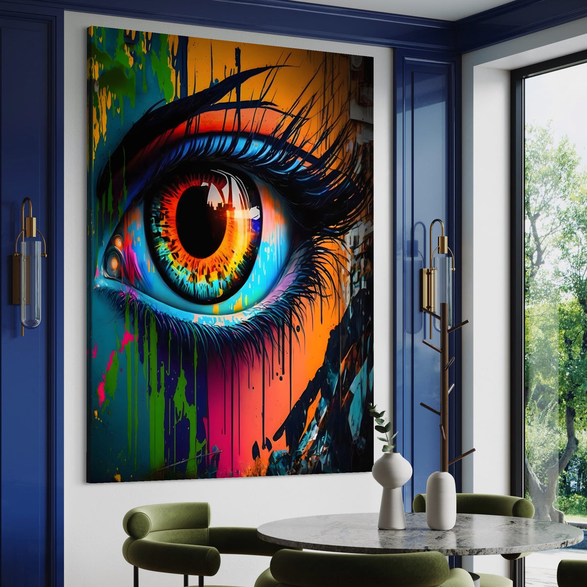 Tablou Canvas Premium LuxCanva® A1296, Colorful Eye, Living, Ochi, Multicolor, Graffiti, Dormitor, Culori Vibrante - 60 X 80