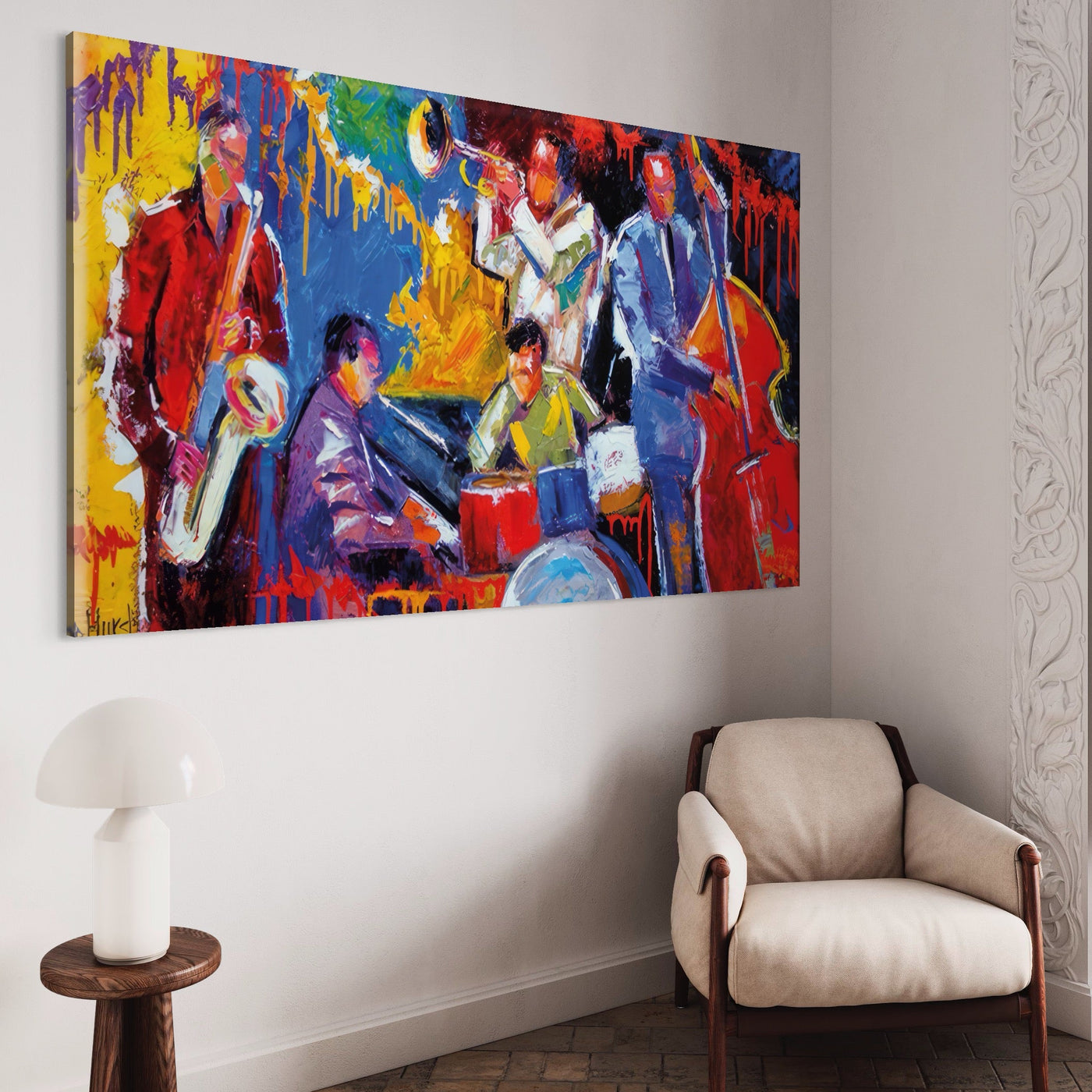 Tablou Canvas Premium LuxCanva® A1325, Colorful Jazz Art , Living, Muzica, Instrumente Muzicale, Formatie, Dormitor, Culori Vibrante