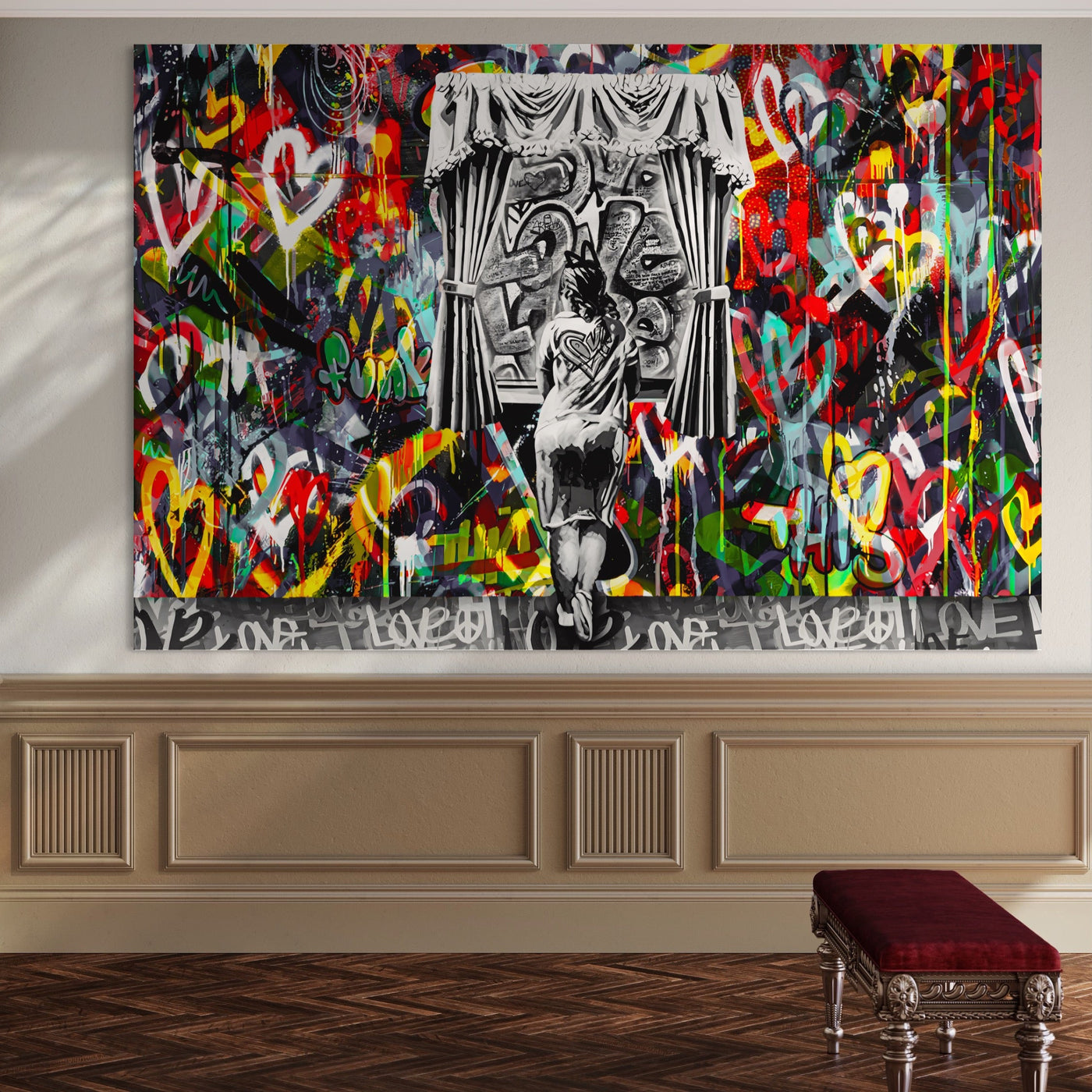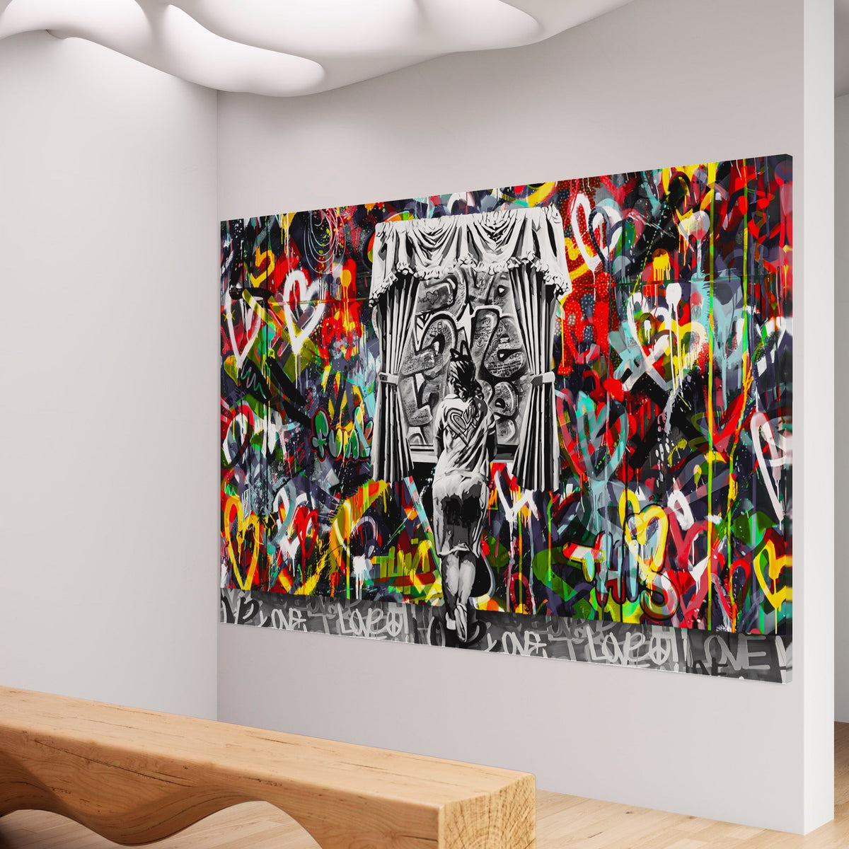 Tablou Canvas Premium LuxCanva® B1041, Wall Of Love , Living, Dormitor, Inspirational, Iubire, Culori, Inimi, Culori Vibrante - 60 X 90