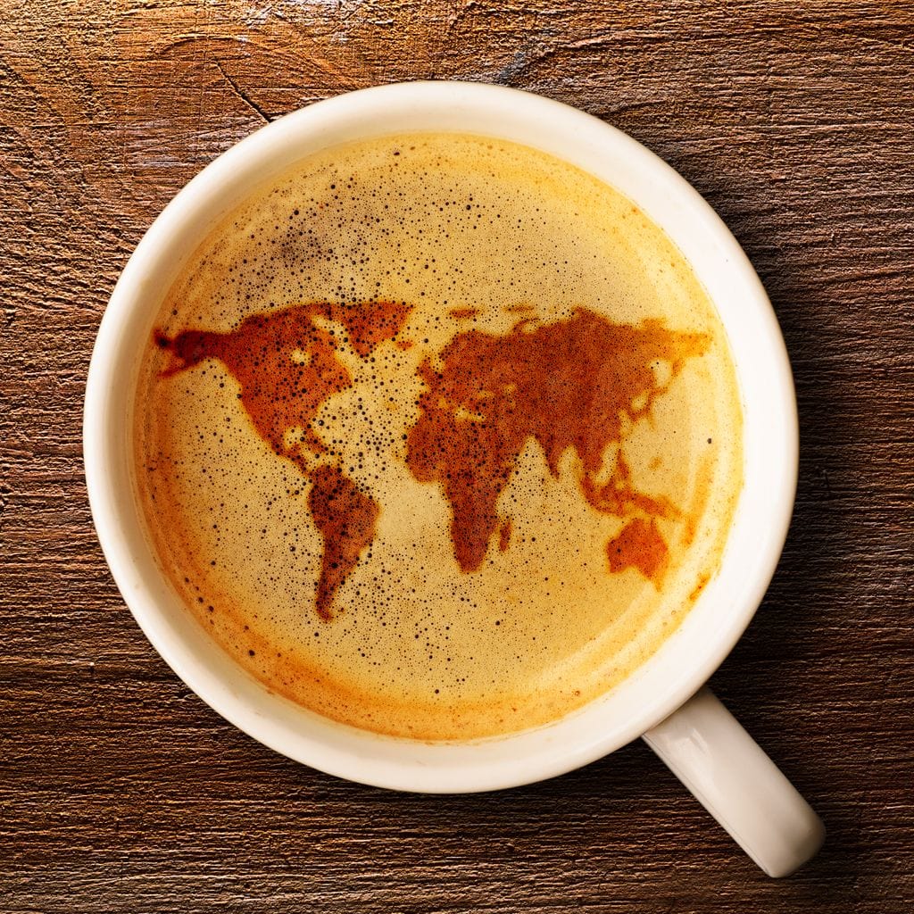 Tablou Canvas Premium, LuxCanva® L1011, Continente in Ceasca, Harta, Cafea, Ceasca, Modern, Artistic, Design, Cafenea, Birou, Living, Camera Copii - 40 X 60