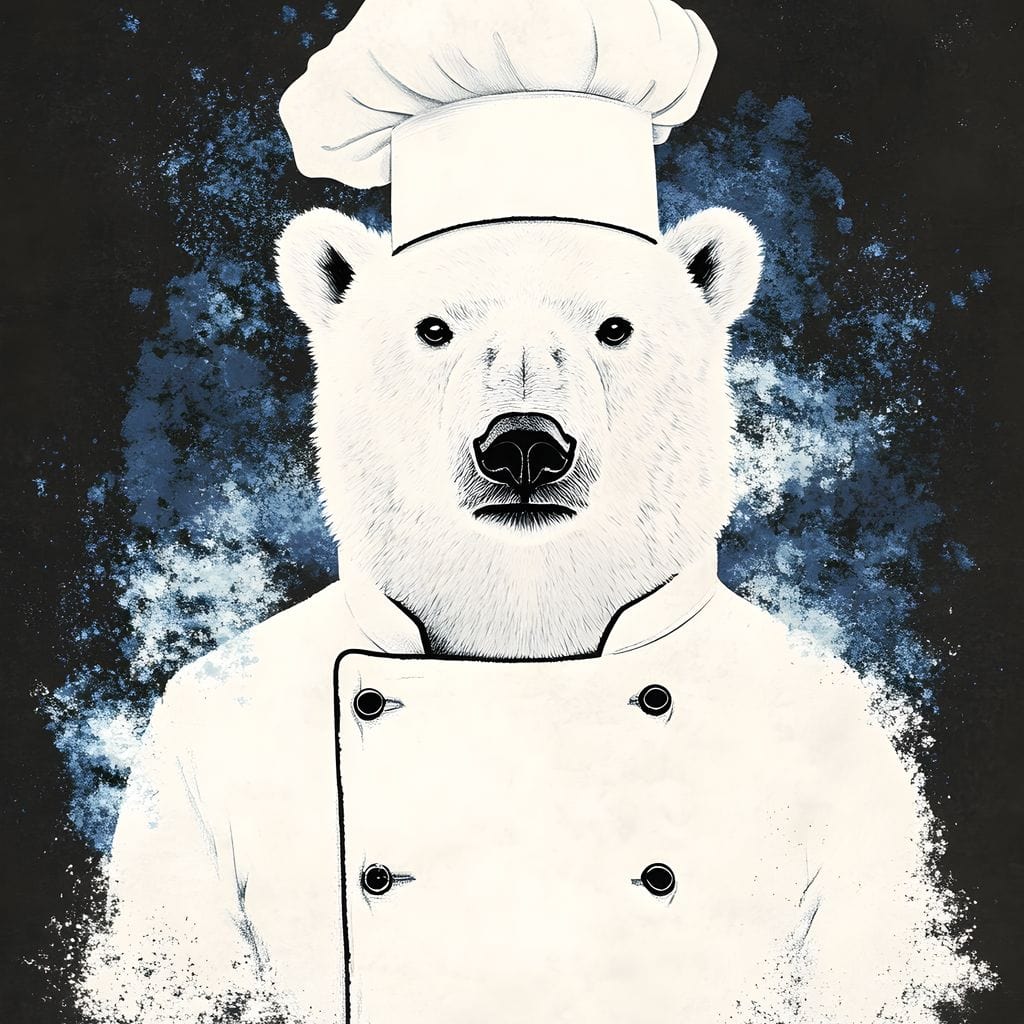 Tablou Canvas Premium, LuxCanva® M1008, Bucatarul Nordului, Bucatar, Alb, Animal, Urs, Retete, Culinar, Gastronomie, Bucatarie, Birou, Living, Camera Copii - 45 X 60