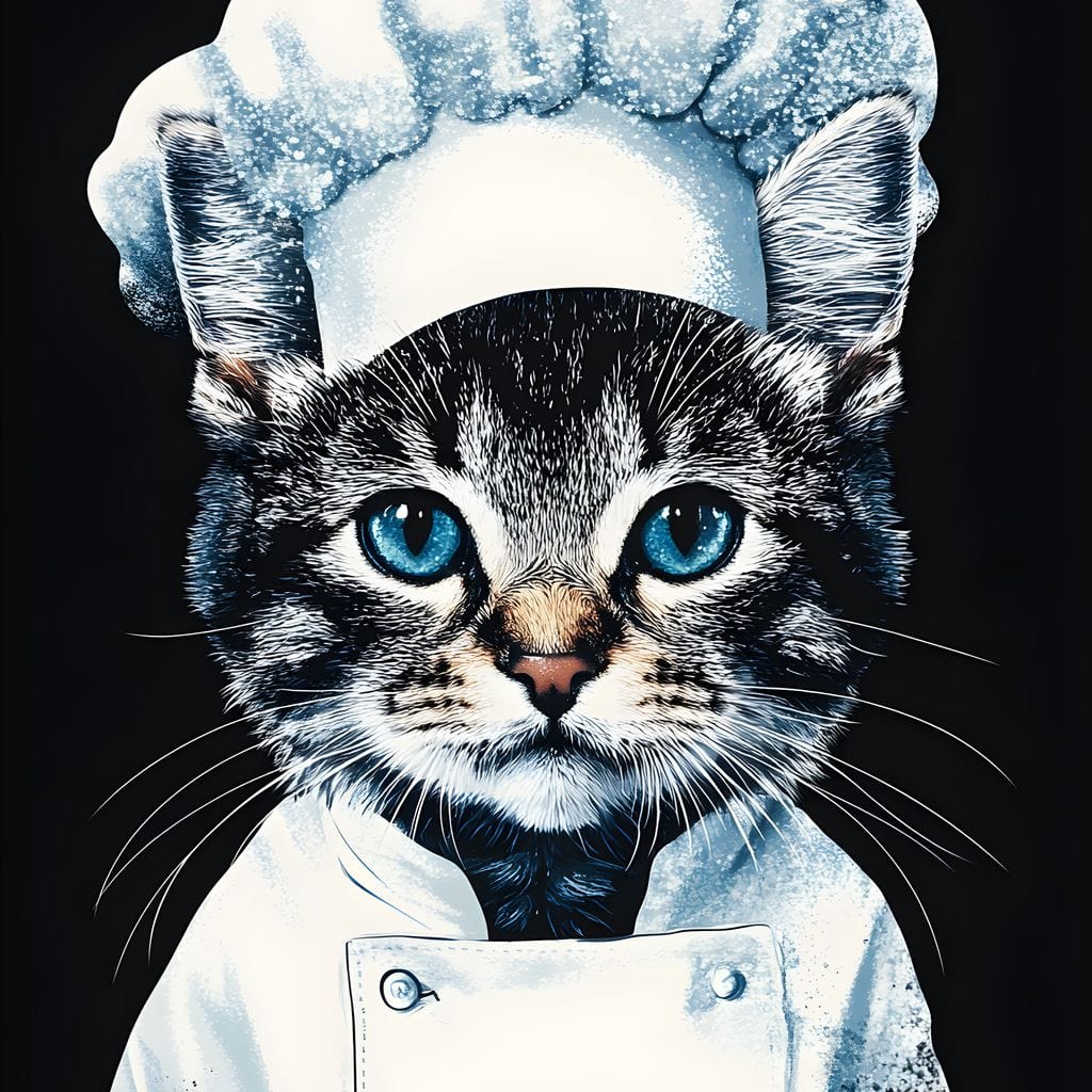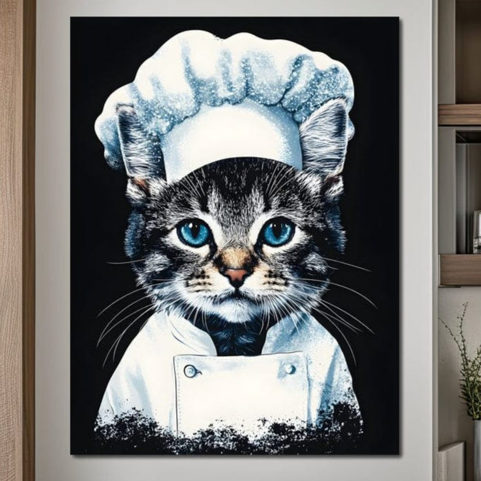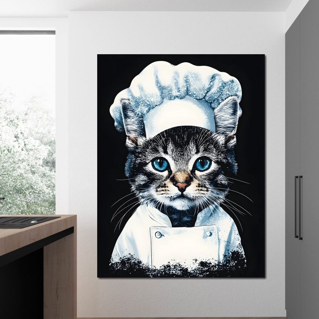Tablou Canvas Premium, LuxCanva® M1215, Chef Gheruta, Pisica, Bucatarie, Gastronomie, Felina, Bucatar, Costum, Restaurant, Adorabil, Vesel, Pufos, Birou, Living, Camera Copil
