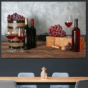 Tablou Canvas Premium, LuxCanva® N1011, Arta Vinului, Vin Rosu, Bautura, Struguri, Sticle, Pahare, Crama, Recolta, Rafinament, Degustare, Pub, Lounge, Bar, Restaurant, Bucatarie - 40 X 60 / Doar Sasiu Lemn / Normala