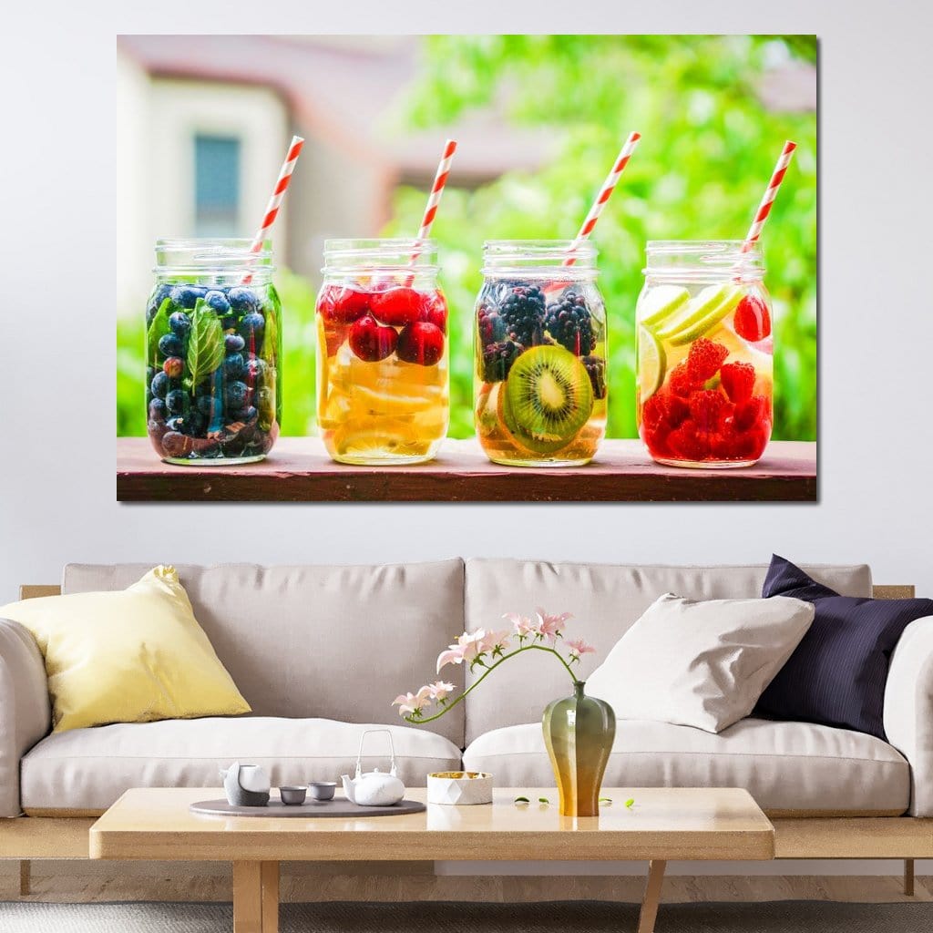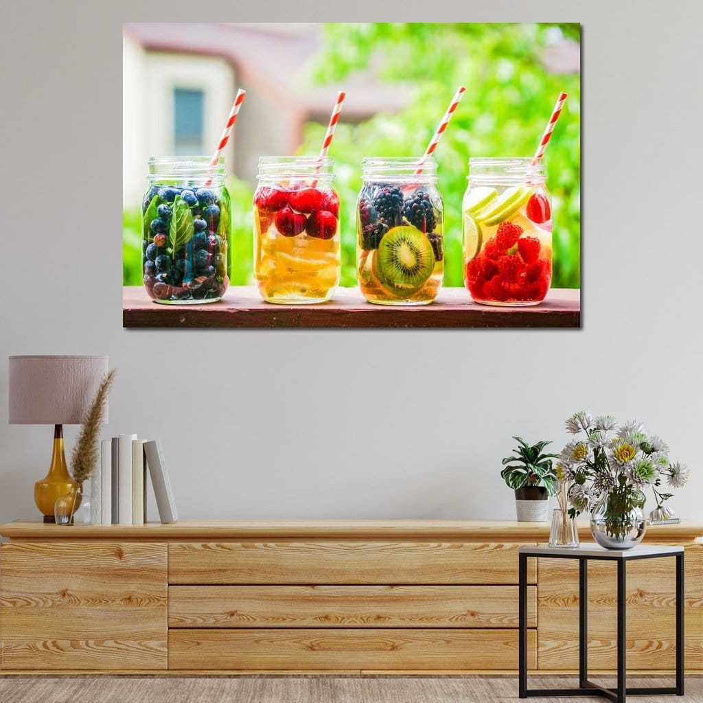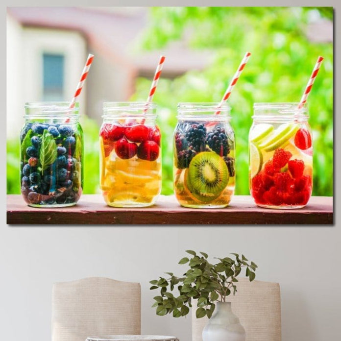 Tablou Canvas Premium, LuxCanva® N1013, Fantezie Fructata, Fructe, Pahare, Bautura, Limonada, Fresh, Racoritor, Sanatos, Prospetime, Citrice, Delicios, Pub, Lounge, Bar, Restaurant, Bucatarie - 40 X 60 / Doar Sasiu Lemn / Normala