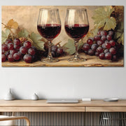 Tablou Canvas Premium, LuxCanva® N1031, Ecouri din Vie, Vin Rosu, Struguri, Bautura, Fructe, Pahare, Frunze, Vie, Savoare, Degustare, Rustic, Pub, Bar, Restaurant, Bucatarie - 50 X 100 / Doar Sasiu Lemn / Normala