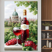 Tablou Canvas Premium, LuxCanva® N1145, De Vita Nobila, Vin Rosu, Sticla, Pahar, Struguri, Bautura, Cupola, Manastire, Vegetatie, Degustare, Pub, Bar, Lounge, Restaurant, Bucatarie