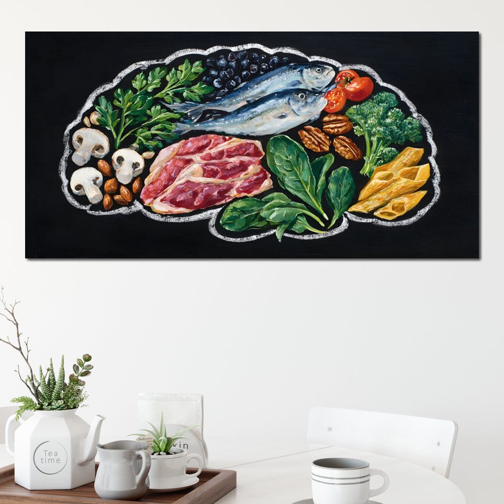 Tablou Canvas Premium, LuxCanva® N1155, Farfuria Perfecta, Peste, Carne, Legume, Ingrediente, Verdeturi, Condimente, Retete, Restaurant, Bucatarie - 50 X 100 / Doar Sasiu Lemn / Normala