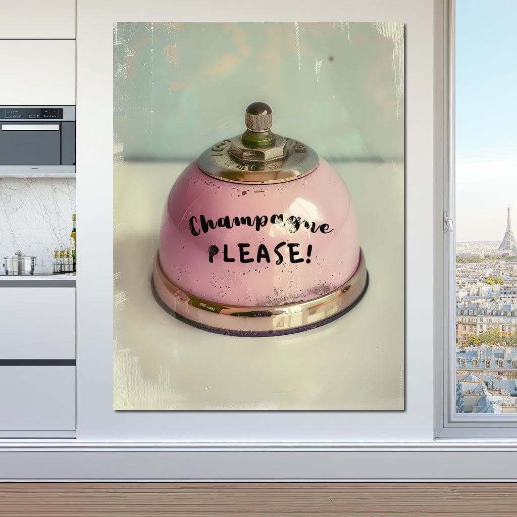 Tablou Canvas Premium, LuxCanva® N1159, Sa Inceapa Petrecerea, Clopotel, Roz, Text, Sampanie, Bautura, Vintage, Ocazie, Pub, Bar, Lounge, Restaurant, Bucatarie