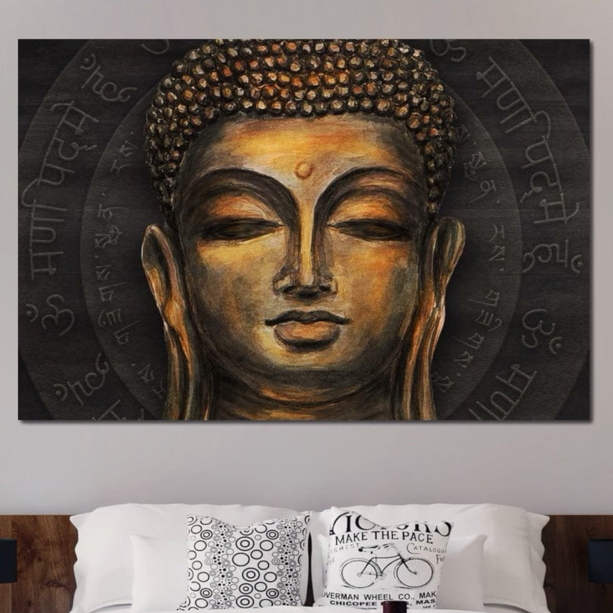 Tablou Canvas Premium LuxCanva® I110, Traieste Zen, Buddha, Zen, Templu, Mantra, Auriu, Echilibru, Ritual, Liniste, Sacru, Meditatie, Armonie, Urna - 60 X 90