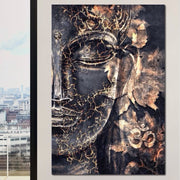 Tablou Canvas Premium LuxCanva® I118, Sub Pielea Timpului, Buddha, Vibratia OM, Constiinta, Spiritualitate, Crapaturi, Frunze, Foc Sacru, Contemplare