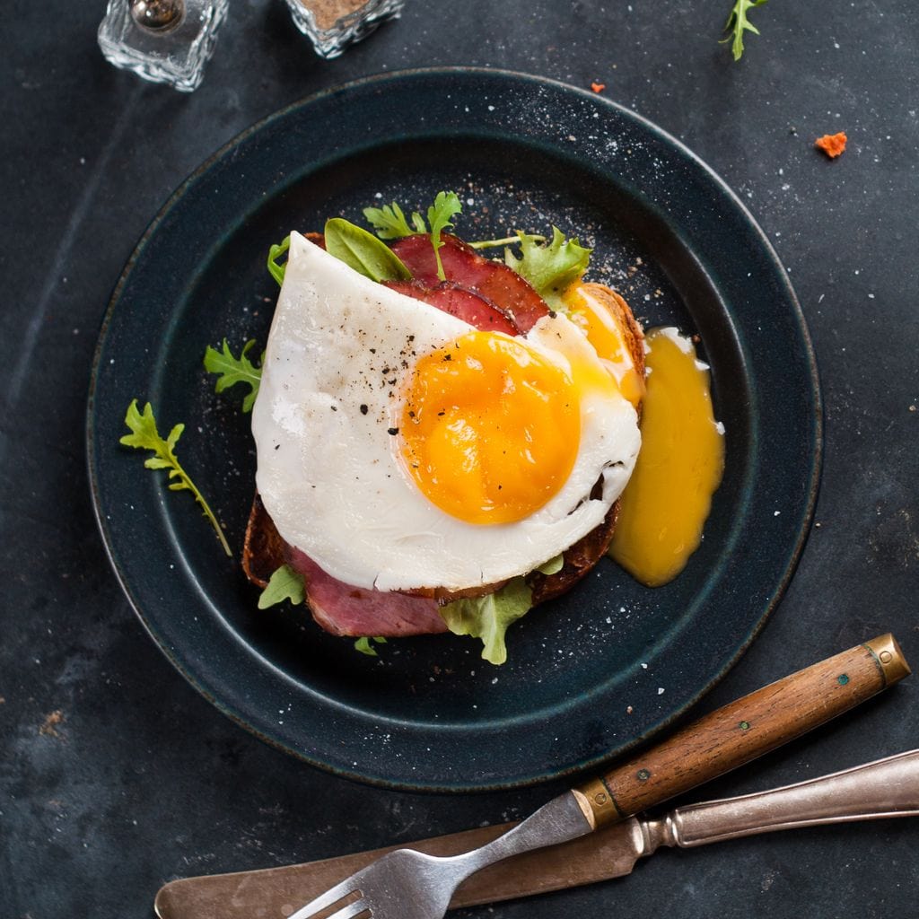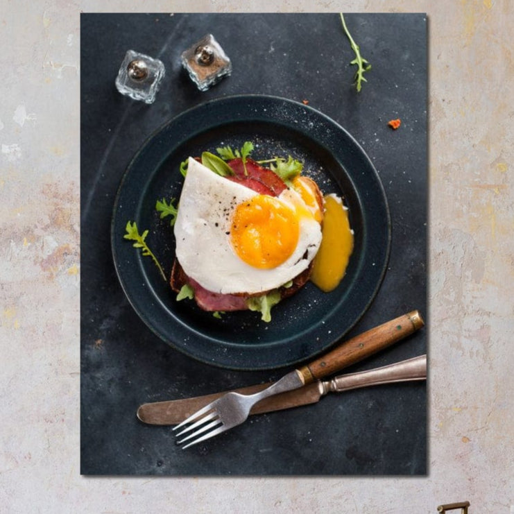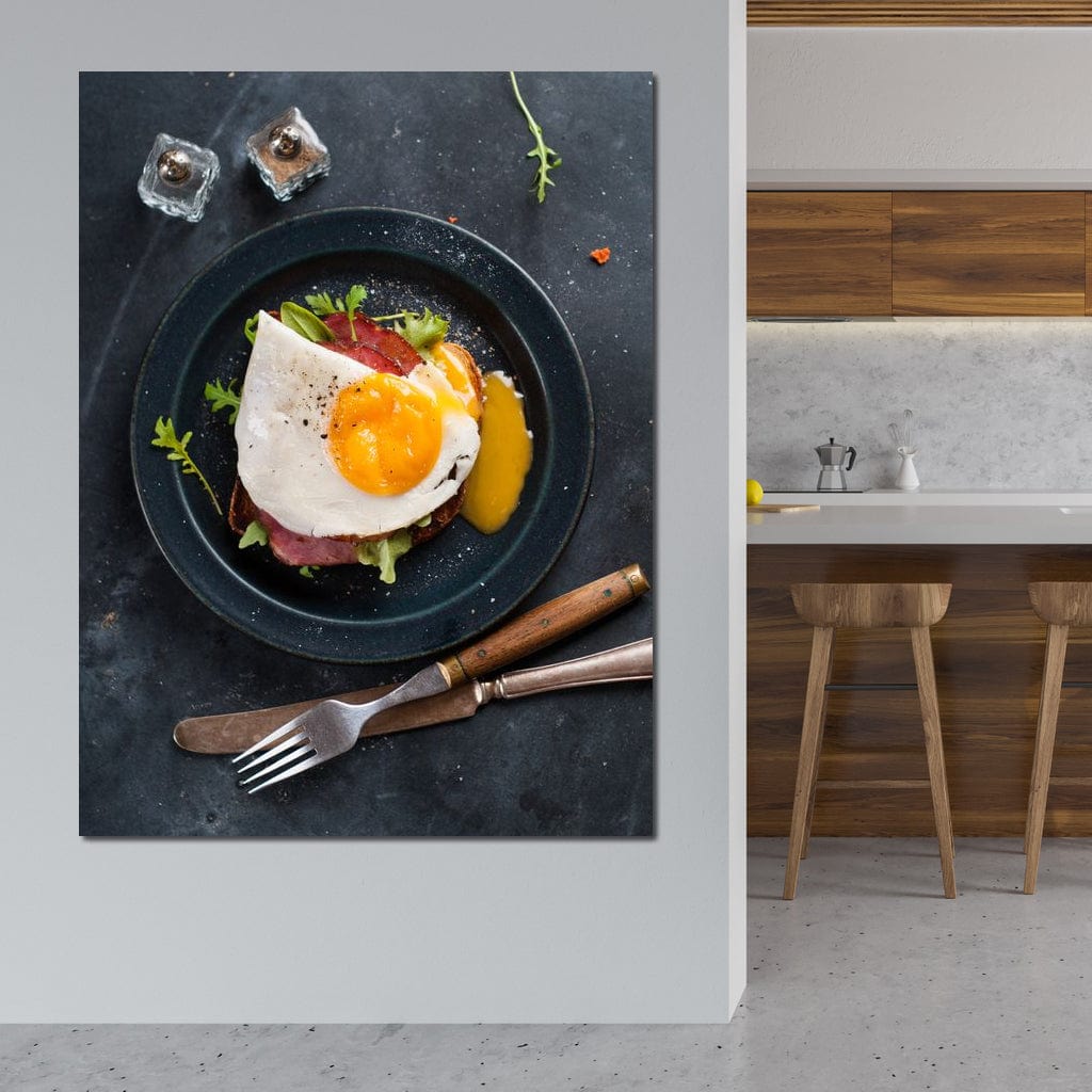 Tablou Canvas Premium, LuxCanva® N1014, Deliciu Matinal, Mancare, Mic Dejun, Farfurie, Ou Prajit, Plating, Tacamuri, Dimineata, Savoare, Energie, Restaurant, Bucatarie - 45 X 60 / Doar Sasiu Lemn / Normala