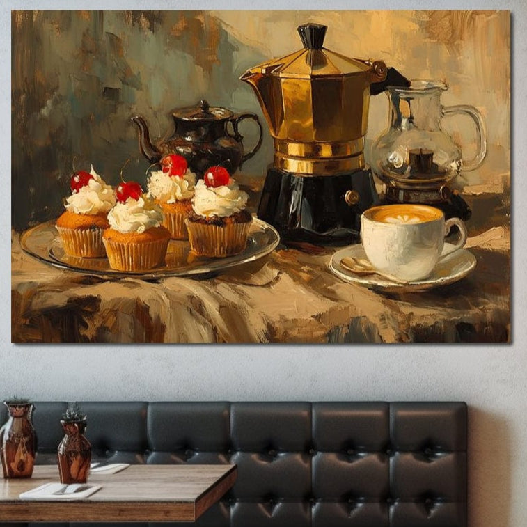 Tablou Canvas Premium, LuxCanva® N1068, Pauza Dulce, Briose, Frisca, Cirese, Desert, Cafea, Espresso, Rustic, Vintage, Cafenea, Pub, Lounge, Bar, Restaurant, Bucatarie - 40 X 60 / Doar Sasiu Lemn / Normala