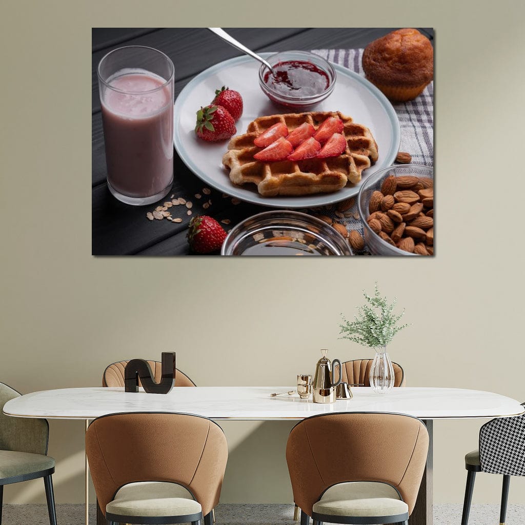 Tablou Canvas Premium, LuxCanva® N1070, Ritualul Dulce, Vafa, Capsuni, Gem, Milkshake, Briosa, Migdale, Rasfat, Mic Dejun, Gustare, Restaurant, Bucatarie - 40 X 60 / Doar Sasiu Lemn / Normala