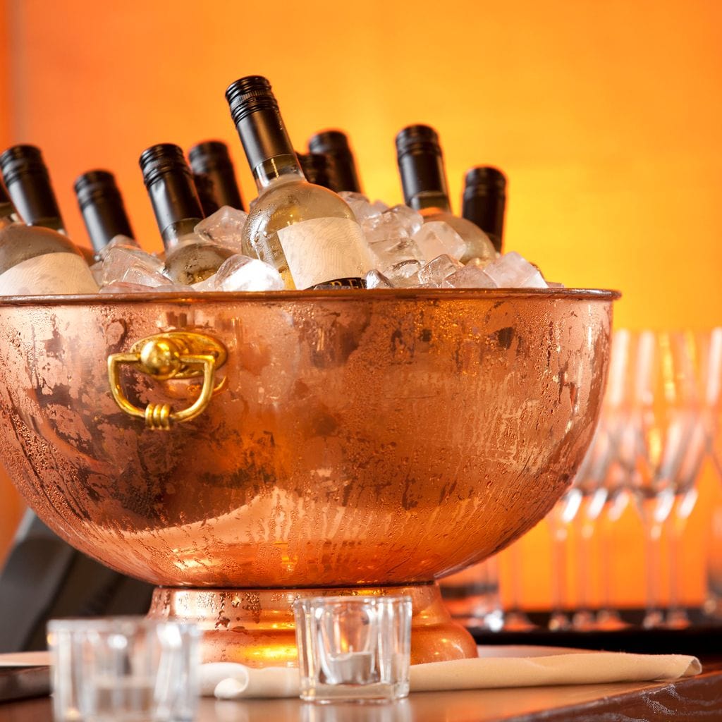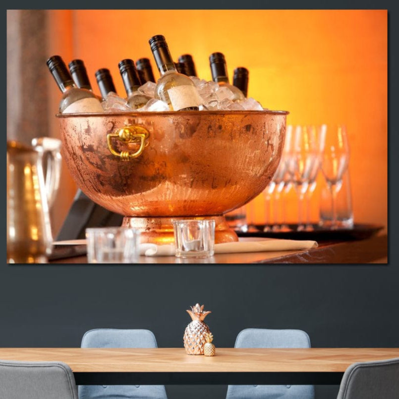 Tablou Canvas Premium, LuxCanva® N1097, Rasfatul Oaspetilor, Sticle, Vin Alb, Bautura, Bol, Rece, Eleganta, Racoritor, Petrecere, Rafinament, Pub, Lounge, Bar, Restaurant, Bucatarie - 40 X 60 / Doar Sasiu Lemn / Normala